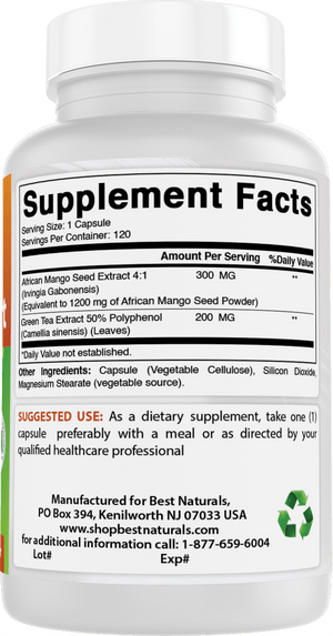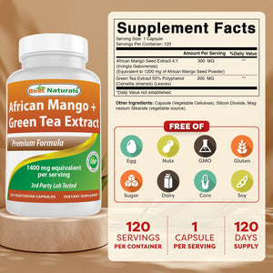Best Naturals African Mango with Green Tea 1400 mg per Serving - 120 Vegetarian Capsules