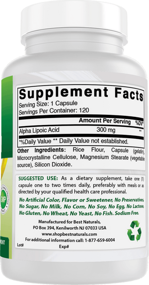 {"id":4510952718473,"title":"Best Naturals Alpha Lipoic Acid 300 mg 120 Capsules","handle":"best-naturals-alpha-lipoic-acid-300-mg-120-capsules","description":"\u003cul\u003e\n\u003cli style=\"font-weight: 400;\"\u003e\u003cspan style=\"font-weight: 400;\"\u003e3rd Party Lab Tested for Purity \u0026amp; Quality.\u003c\/span\u003e\u003c\/li\u003e\n\u003cli style=\"font-weight: 400;\"\u003e\u003cspan style=\"font-weight: 400;\"\u003e300 mg of Alpha Lipoic Acid per Capsule - 120 Capsules per Bottle.\u003c\/span\u003e\u003c\/li\u003e\n\u003cli style=\"font-weight: 400;\"\u003e\u003cspan style=\"font-weight: 400;\"\u003eNon-GMO \u0026amp; Gluten Free.\u003c\/span\u003e\u003c\/li\u003e\n\u003cli style=\"font-weight: 400;\"\u003e\u003cspan style=\"font-weight: 400;\"\u003eProudly Made in USA, GMP Compliant, FDA Registered Facility.\u003c\/span\u003e\u003c\/li\u003e\n\u003cli style=\"font-weight: 400;\"\u003e\u003cspan style=\"font-weight: 400;\"\u003eNo Artificial Color, Flavor or Sweetener, No Preservatives, No Sugar, No Milk, No Corn, No Soy, No Egg, No Lactose, No Gluten, No Wheat, No Yeast, No Fish. Sodium Free.\u003c\/span\u003e\u003c\/li\u003e\n\u003c\/ul\u003e","published_at":"2020-01-26T01:45:32-05:00","created_at":"2020-01-26T04:45:44-05:00","vendor":"shopbestnaturals.com","type":"","tags":["Supplements"],"price":1499,"price_min":1499,"price_max":1499,"available":true,"price_varies":false,"compare_at_price":2799,"compare_at_price_min":2799,"compare_at_price_max":2799,"compare_at_price_varies":false,"variants":[{"id":31971842490505,"title":"Default Title","option1":"Default Title","option2":null,"option3":null,"sku":"817716013589","requires_shipping":true,"taxable":false,"featured_image":null,"available":true,"name":"Best Naturals Alpha Lipoic Acid 300 mg 120 Capsules","public_title":null,"options":["Default Title"],"price":1499,"weight":109,"compare_at_price":2799,"inventory_management":"shopify","barcode":"817716013589","requires_selling_plan":false,"selling_plan_allocations":[]}],"images":["\/\/shopbestnaturals-com.myshopify.com\/cdn\/shop\/files\/Image-1_e122b49b-b8f9-4e20-9992-5886706221e8.png?v=1749675017","\/\/shopbestnaturals-com.myshopify.com\/cdn\/shop\/files\/Image-4_1758ffc8-2204-49bf-9826-8ac2c0867671.jpg?v=1749675019","\/\/shopbestnaturals-com.myshopify.com\/cdn\/shop\/files\/Image-5_61e0198f-6875-4eb3-96bb-1cf20b89baef.jpg?v=1749675021","\/\/shopbestnaturals-com.myshopify.com\/cdn\/shop\/files\/Image-6_ed15ae72-f9de-441d-b05e-b0ab228384b4.jpg?v=1749675023","\/\/shopbestnaturals-com.myshopify.com\/cdn\/shop\/files\/Image-7_5559f613-a29b-4454-9117-b08c52e360f4.jpg?v=1756143767","\/\/shopbestnaturals-com.myshopify.com\/cdn\/shop\/files\/Image-2_3242a5fa-06e6-4d9e-bc50-cbb5e416dea6.png?v=1756143767","\/\/shopbestnaturals-com.myshopify.com\/cdn\/shop\/files\/Image-3_3fd96d2e-4b84-4825-92ad-127a77f3278f.png?v=1756143767"],"featured_image":"\/\/shopbestnaturals-com.myshopify.com\/cdn\/shop\/files\/Image-1_e122b49b-b8f9-4e20-9992-5886706221e8.png?v=1749675017","options":["Title"],"media":[{"alt":null,"id":35385619022041,"position":1,"preview_image":{"aspect_ratio":0.523,"height":1500,"width":785,"src":"\/\/shopbestnaturals-com.myshopify.com\/cdn\/shop\/files\/Image-1_e122b49b-b8f9-4e20-9992-5886706221e8.png?v=1749675017"},"aspect_ratio":0.523,"height":1500,"media_type":"image","src":"\/\/shopbestnaturals-com.myshopify.com\/cdn\/shop\/files\/Image-1_e122b49b-b8f9-4e20-9992-5886706221e8.png?v=1749675017","width":785},{"alt":null,"id":35385619120345,"position":2,"preview_image":{"aspect_ratio":1.0,"height":1500,"width":1500,"src":"\/\/shopbestnaturals-com.myshopify.com\/cdn\/shop\/files\/Image-4_1758ffc8-2204-49bf-9826-8ac2c0867671.jpg?v=1749675019"},"aspect_ratio":1.0,"height":1500,"media_type":"image","src":"\/\/shopbestnaturals-com.myshopify.com\/cdn\/shop\/files\/Image-4_1758ffc8-2204-49bf-9826-8ac2c0867671.jpg?v=1749675019","width":1500},{"alt":null,"id":35385619153113,"position":3,"preview_image":{"aspect_ratio":1.0,"height":1500,"width":1500,"src":"\/\/shopbestnaturals-com.myshopify.com\/cdn\/shop\/files\/Image-5_61e0198f-6875-4eb3-96bb-1cf20b89baef.jpg?v=1749675021"},"aspect_ratio":1.0,"height":1500,"media_type":"image","src":"\/\/shopbestnaturals-com.myshopify.com\/cdn\/shop\/files\/Image-5_61e0198f-6875-4eb3-96bb-1cf20b89baef.jpg?v=1749675021","width":1500},{"alt":null,"id":35385619185881,"position":4,"preview_image":{"aspect_ratio":1.0,"height":1500,"width":1500,"src":"\/\/shopbestnaturals-com.myshopify.com\/cdn\/shop\/files\/Image-6_ed15ae72-f9de-441d-b05e-b0ab228384b4.jpg?v=1749675023"},"aspect_ratio":1.0,"height":1500,"media_type":"image","src":"\/\/shopbestnaturals-com.myshopify.com\/cdn\/shop\/files\/Image-6_ed15ae72-f9de-441d-b05e-b0ab228384b4.jpg?v=1749675023","width":1500},{"alt":null,"id":37655835181273,"position":5,"preview_image":{"aspect_ratio":1.0,"height":1500,"width":1500,"src":"\/\/shopbestnaturals-com.myshopify.com\/cdn\/shop\/files\/Image-7_5559f613-a29b-4454-9117-b08c52e360f4.jpg?v=1756143767"},"aspect_ratio":1.0,"height":1500,"media_type":"image","src":"\/\/shopbestnaturals-com.myshopify.com\/cdn\/shop\/files\/Image-7_5559f613-a29b-4454-9117-b08c52e360f4.jpg?v=1756143767","width":1500},{"alt":null,"id":35385619054809,"position":6,"preview_image":{"aspect_ratio":0.523,"height":1500,"width":785,"src":"\/\/shopbestnaturals-com.myshopify.com\/cdn\/shop\/files\/Image-2_3242a5fa-06e6-4d9e-bc50-cbb5e416dea6.png?v=1756143767"},"aspect_ratio":0.523,"height":1500,"media_type":"image","src":"\/\/shopbestnaturals-com.myshopify.com\/cdn\/shop\/files\/Image-2_3242a5fa-06e6-4d9e-bc50-cbb5e416dea6.png?v=1756143767","width":785},{"alt":null,"id":35385619087577,"position":7,"preview_image":{"aspect_ratio":0.523,"height":1500,"width":785,"src":"\/\/shopbestnaturals-com.myshopify.com\/cdn\/shop\/files\/Image-3_3fd96d2e-4b84-4825-92ad-127a77f3278f.png?v=1756143767"},"aspect_ratio":0.523,"height":1500,"media_type":"image","src":"\/\/shopbestnaturals-com.myshopify.com\/cdn\/