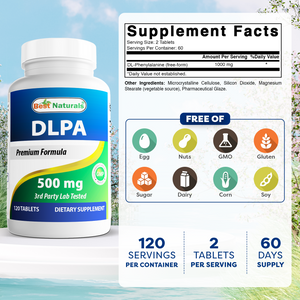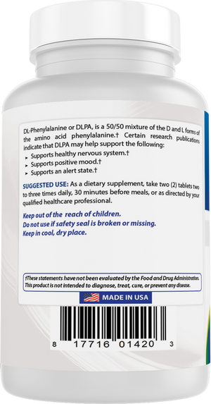 • 500 mg of DLPA per Tablet - 120 Tablets per Bottle.