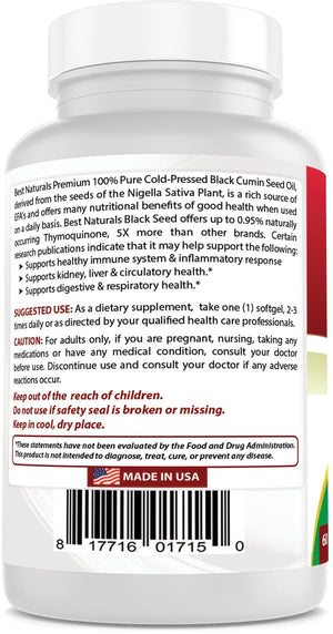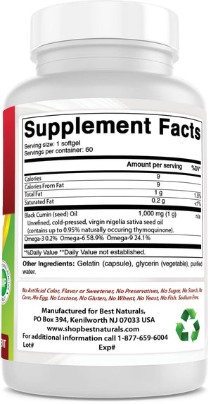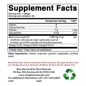 Best Naturals Black Seed Oil 1000 mg 60 Softgels