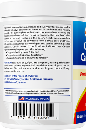 {"id":4514698461321,"title":"Best Naturals Calcium Carbonate 1 Lb Powder","handle":"best-naturals-calcium-carbonate-1-lb-powder","description":"\u003cul\u003e\n\u003cli style=\"font-weight: 400;\"\u003e\u003cspan style=\"font-weight: 400;\"\u003e3rd Party Lab Tested for Purity \u0026amp; Quality.\u003c\/span\u003e\u003c\/li\u003e\n\u003cli style=\"font-weight: 400;\"\u003e\n\u003cspan style=\"font-weight: 400;\"\u003e½ \u003c\/span\u003e\u003cspan style=\"font-weight: 400;\"\u003eLevel Teaspoon\u003c\/span\u003e\u003cspan style=\"font-weight: 400;\"\u003e (1.6 g) of Calcium Carbonate per Serving, 284 Servings per bottle\u003c\/span\u003e\u003cspan style=\"font-weight: 400;\"\u003e.\u003c\/span\u003e\n\u003c\/li\u003e\n\u003cli style=\"font-weight: 400;\"\u003e\u003cspan style=\"font-weight: 400;\"\u003eNon-GMO \u0026amp; Gluten-Free.\u003c\/span\u003e\u003c\/li\u003e\n\u003cli style=\"font-weight: 400;\"\u003e\u003cspan style=\"font-weight: 400;\"\u003eProudly Made in USA, GMP Compliant, FDA Registered Facility.\u003c\/span\u003e\u003c\/li\u003e\n\u003cli style=\"font-weight: 400;\"\u003e\u003cspan style=\"font-weight: 400;\"\u003eNo Artificial Color, Flavor, or Sweetener, No Preservatives, No Sugar, No Milk, No Corn, No Soy, No Egg, No Lactose, No Gluten, No Wheat, No Yeast, No Fish. Sodium Free.\u003c\/span\u003e\u003c\/li\u003e\n\u003c\/ul\u003e","published_at":"2020-01-28T07:53:45-05:00","created_at":"2020-01-28T08:11:51-05:00","vendor":"shopbestnaturals.com","type":"","tags":["A to Z Minerals"],"price":1095,"price_min":1095,"price_max":1095,"available":true,"price_varies":false,"compare_at_price":2499,"compare_at_price_min":2499,"compare_at_price_max":2499,"compare_at_price_varies":false,"variants":[{"id":31994140393609,"title":"Default Title","option1":"Default Title","option2":null,"option3":null,"sku":"817716014609","requires_shipping":true,"taxable":false,"featured_image":null,"available":true,"name":"Best Naturals Calcium Carbonate 1 Lb Powder","public_title":null,"options":["Default Title"],"price":1095,"weight":522,"compare_at_price":2499,"inventory_management":"shopify","barcode":"817716014609","requires_selling_plan":false,"selling_plan_allocations":[]}],"images":["\/\/shopbestnaturals-com.myshopify.com\/cdn\/shop\/files\/Image-1_16b1651b-4430-42fb-80e0-1aa075b3ea87.png?v=1756140813","\/\/shopbestnaturals-com.myshopify.com\/cdn\/shop\/files\/Image-4_b6f881ad-2b1f-4386-b83f-e75ce1e48b46.jpg?v=1756140830","\/\/shopbestnaturals-com.myshopify.com\/cdn\/shop\/files\/Image-5_3fece464-a17d-4196-8d6b-cbe8b97b2e66.jpg?v=1756140830","\/\/shopbestnaturals-com.myshopify.com\/cdn\/shop\/files\/Image-6_38b8696c-3113-4c27-9c17-3d4cf3760277.jpg?v=1756140830","\/\/shopbestnaturals-com.myshopify.com\/cdn\/shop\/files\/Image-7_ebee4bc8-5c1b-457c-abdc-cac65b3e8537.jpg?v=1756140830","\/\/shopbestnaturals-com.myshopify.com\/cdn\/shop\/files\/Image-2_2f092ebb-9647-436c-aa81-45557ea607e8.png?v=1756140830","\/\/shopbestnaturals-com.myshopify.com\/cdn\/shop\/files\/Image-3_a0f7f28b-e6a5-4056-b7ca-3d96173323e2.png?v=1756140830"],"featured_image":"\/\/shopbestnaturals-com.myshopify.com\/cdn\/shop\/files\/Image-1_16b1651b-4430-42fb-80e0-1aa075b3ea87.png?v=1756140813","options":["Title"],"media":[{"alt":null,"id":37655779344601,"position":1,"preview_image":{"aspect_ratio":0.668,"height":1500,"width":1002,"src":"\/\/shopbestnaturals-com.myshopify.com\/cdn\/shop\/files\/Image-1_16b1651b-4430-42fb-80e0-1aa075b3ea87.png?v=1756140813"},"aspect_ratio":0.668,"height":1500,"media_type":"image","src":"\/\/shopbestnaturals-com.myshopify.com\/cdn\/shop\/files\/Image-1_16b1651b-4430-42fb-80e0-1aa075b3ea87.png?v=1756140813","width":1002},{"alt":null,"id":37655779934425,"position":2,"preview_image":{"aspect_ratio":1.0,"height":1500,"width":1500,"src":"\/\/shopbestnaturals-com.myshopify.com\/cdn\/shop\/files\/Image-4_b6f881ad-2b1f-4386-b83f-e75ce1e48b46.jpg?v=1756140830"},"aspect_ratio":1.0,"height":1500,"media_type":"image","src":"\/\/shopbestnaturals-com.myshopify.com\/cdn\/shop\/files\/Image-4_b6f881ad-2b1f-4386-b83f-e75ce1e48b46.jpg?v=1756140830","width":1500},{"alt":null,"id":37655779967193,"position":3,"preview_image":{"aspect_ratio":1.0,"height":1500,"width":1500,"src":"\/\/shopbestnaturals-com.myshopify.com\/cdn\/shop\/files\/Image-5_3fece464-a17d-4196-8d6b-cbe8b97b2e66.jpg?v=1756140830"},"aspect_ratio":1.0,"height":1500,"media_type":"image","src":"\/\/shopbestnaturals-com.myshopify.com\/cdn\/shop\/files\/Image-5_3fece464-a17d-4196-8d6b-cbe8b97b2e66.jpg?v=1756140830","width":1500},{"alt":null,"id":37655779999961,"position":4,"preview_image":{"aspect_ratio":1.0,"height":1500,"width":1500,"src":"\/\/shopbestnaturals-com.myshopify.com\/cdn\/shop\/files\/Image-6_38b8696c-3113-4c27-9c17-3d4cf3760277.jpg?v=1756140830"},"aspect_ratio":1.0,"height":1500,"media_type":"image","src":"\/\/shopbestnaturals-com.myshopify.com\/cdn\/shop\/files\/Image-6_38b8696c-3113-4c27-9c17-3d4cf3760277.jpg?v=1756140830","width":1500},{"alt":null,"id":37655780032729,"position":5,"preview_image":{"aspect_ratio":1.0,"height":1500,"width":1500,"src":"\/\/shopbestnaturals-com.myshopify.com\/cdn\/shop\/files\/Image-7_ebee4bc8-5c1b-457c-abdc-cac65b3e8537.jpg?v=1756140830"},"aspect_ratio":1.0,"height":1500,"media_type":"image","src":"\/\/shopbestnaturals-com.myshopify.com\/cdn\/shop\/files\/Image-7_ebee4bc8-5c1b-457c-abdc-cac65b3e8537.jpg?v=1756140830","width":1500},{"alt":null,"id":37655780065497,"position":6,"preview_image":{"aspect_ratio":0.668,"height":1500,"width":1002,"src":"\/\/shopbestnaturals-com.myshopify.com\/cdn\/shop\/files\/Image-2_2f092ebb-9647-436c-aa81-45557ea607e8.png?v=1756140830"},"aspect_ratio":0.668,"height":1500,"media_type":"image","src":"\/\/shopbestnaturals-com.myshopify.com\/cdn\/shop\/files\/Image-2_2f092ebb-9647-436c-aa81-45557ea607e8.png?v=1756140830","width":1002},{"alt":null,"id":37655780098265,"position":7,"preview_image":{"aspect_ratio":0.668,"height":1500,"width":1002,"src":"\/\/shopbestnaturals-com.myshopify.c