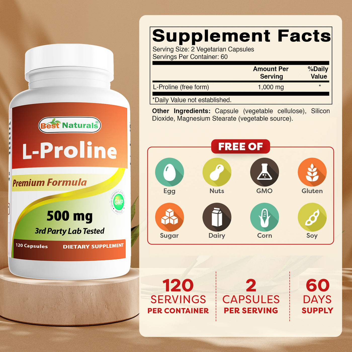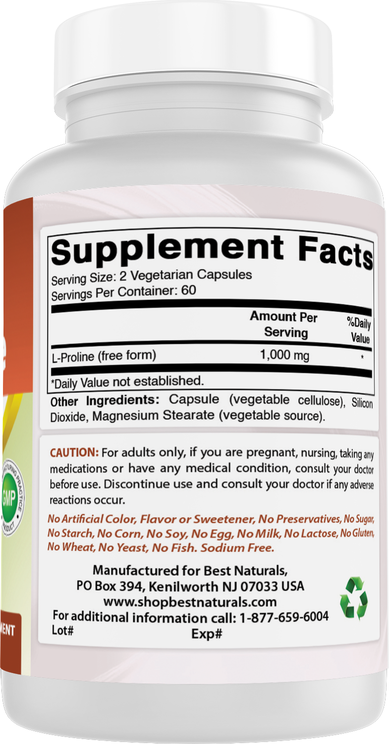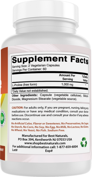 {"id":4679749664905,"title":"Best Naturals L-Proline 500 mg 120 Vegetarian Capsules","handle":"best-naturals-l-proline-500-mg-120-capsules","description":"\u003cul data-mce-fragment=\"1\"\u003e\n\u003cli style=\"font-weight: 400;\" data-mce-fragment=\"1\"\u003e\u003cspan style=\"font-weight: 400;\" data-mce-fragment=\"1\"\u003e3rd Party Lab Tested for Purity \u0026amp; Quality.\u003c\/span\u003e\u003c\/li\u003e\n\u003cli style=\"font-weight: 400;\" data-mce-fragment=\"1\"\u003e\u003cspan style=\"font-weight: 400;\" data-mce-fragment=\"1\"\u003e500 mg of L-Proline per Vegetarian Capsule - 120 Capsules per Bottle.\u003c\/span\u003e\u003c\/li\u003e\n\u003cli style=\"font-weight: 400;\" data-mce-fragment=\"1\"\u003e\u003cspan style=\"font-weight: 400;\" data-mce-fragment=\"1\"\u003eNon-GMO \u0026amp; Gluten-Free.\u003c\/span\u003e\u003c\/li\u003e\n\u003cli style=\"font-weight: 400;\" data-mce-fragment=\"1\"\u003e\u003cspan style=\"font-weight: 400;\" data-mce-fragment=\"1\"\u003eProudly Made in USA, GMP Compliant, FDA Registered Facility.\u003c\/span\u003e\u003c\/li\u003e\n\u003cli style=\"font-weight: 400;\" data-mce-fragment=\"1\"\u003e\u003cspan style=\"font-weight: 400;\" data-mce-fragment=\"1\"\u003eNo Artificial Color, Flavor, or Sweetener, No Preservatives, No Sugar, No Milk, No Corn, No Soy, No Egg, No Lactose, No Gluten, No Wheat, No Yeast, No Fish. Sodium Free.\u003c\/span\u003e\u003c\/li\u003e\n\u003c\/ul\u003e","published_at":"2020-03-16T09:13:44-04:00","created_at":"2020-03-16T09:19:49-04:00","vendor":"shopbestnaturals.com","type":"","tags":["Supplements"],"price":1021,"price_min":1021,"price_max":1021,"available":true,"price_varies":false,"compare_at_price":2499,"compare_at_price_min":2499,"compare_at_price_max":2499,"compare_at_price_varies":false,"variants":[{"id":32795899265161,"title":"Default Title","option1":"Default Title","option2":null,"option3":null,"sku":"817716014456","requires_shipping":true,"taxable":false,"featured_image":null,"available":true,"name":"Best Naturals L-Proline 500 mg 120 Vegetarian Capsules","public_title":null,"options":["Default Title"],"price":1021,"weight":113,"compare_at_price":2499,"inventory_management":"shopify","barcode":"817716014456","requires_selling_plan":false,"selling_plan_allocations":[]}],"images":["\/\/shopbestnaturals-com.myshopify.com\/cdn\/shop\/products\/Image-1_ab64d53b-cd5a-42ce-9c40-b78cee1e374f.jpg?v=1749676158","\/\/shopbestnaturals-com.myshopify.com\/cdn\/shop\/files\/Image-4_d5a00abc-89e9-4a73-8749-8f4255f2494b.jpg?v=1757443933","\/\/shopbestnaturals-com.myshopify.com\/cdn\/shop\/files\/Image-5_7cdc1c06-89e6-4163-b44e-23f177008768.jpg?v=1757443933","\/\/shopbestnaturals-com.myshopify.com\/cdn\/shop\/files\/Image-6_2dff6600-6d82-4b45-84d9-acb156e8a213.jpg?v=1757443934","\/\/shopbestnaturals-com.myshopify.com\/cdn\/shop\/files\/Image-7_c4e7d4a9-2da6-484f-bbba-324a41b4c05d.jpg?v=1757443933","\/\/shopbestnaturals-com.myshopify.com\/cdn\/shop\/files\/Image-2_96705df1-21f4-466c-94cf-cf5c3a678a98.png?v=1757443933","\/\/shopbestnaturals-com.myshopify.com\/cdn\/shop\/files\/Image-3_bf5a37da-c119-4743-bbd7-10bb77f6270d.png?v=1757443934"],"featured_image":"\/\/shopbestnaturals-com.myshopify.com\/cdn\/shop\/products\/Image-1_ab64d53b-cd5a-42ce-9c40-b78cee1e374f.jpg?v=1749676158","options":["Title"],"media":[{"alt":"Best Naturals L-Proline 500 mg 120 Capsules - shopbestnaturals.com","id":12135434551457,"position":1,"preview_image":{"aspect_ratio":0.525,"height":2574,"width":1351,"src":"\/\/shopbestnaturals-com.myshopify.com\/cdn\/shop\/products\/Image-1_ab64d53b-cd5a-42ce-9c40-b78cee1e374f.jpg?v=1749676158"},"aspect_ratio":0.525,"height":2574,"media_type":"image","src":"\/\/shopbestnaturals-com.myshopify.com\/cdn\/shop\/products\/Image-1_ab64d53b-cd5a-42ce-9c40-b78cee1e374f.jpg?v=1749676158","width":1351},{"alt":null,"id":37717730164953,"position":2,"preview_image":{"aspect_ratio":1.0,"height":1500,"width":1500,"src":"\/\/shopbestnaturals-com.myshopify.com\/cdn\/shop\/files\/Image-4_d5a00abc-89e9-4a73-8749-8f4255f2494b.jpg?v=1757443933"},"aspect_ratio":1.0,"height":1500,"media_type":"image","src":"\/\/shopbestnaturals-com.myshopify.com\/cdn\/shop\/files\/Image-4_d5a00abc-89e9-4a73-8749-8f4255f2494b.jpg?v=1757443933","width":1500},{"alt":null,"id":37717730197721,"position":3,"preview_image":{"aspect_ratio":1.0,"height":1500,"width":1500,"src":"\/\/shopbestnaturals-com.myshopify.com\/cdn\/shop\/files\/Image-5_7cdc1c06-89e6-4163-b44e-23f177008768.jpg?v=1757443933"},"aspect_ratio":1.0,"height":1500,"media_type":"image","src":"\/\/shopbestnaturals-com.myshopify.com\/cdn\/shop\/files\/Image-5_7cdc1c06-89e6-4163-b44e-23f177008768.jpg?v=1757443933","width":1500},{"alt":null,"id":37717730230489,"position":4,"preview_image":{"aspect_ratio":1.0,"height":1500,"width":1500,"src":"\/\/shopbestnaturals-com.myshopify.com\/cdn\/shop\/files\/Image-6_2dff6600-6d82-4b45-84d9-acb156e8a213.jpg?v=1757443934"},"aspect_ratio":1.0,"height":1500,"media_type":"image","src":"\/\/shopbestnaturals-com.myshopify.com\/cdn\/shop\/files\/Image-6_2dff6600-6d82-4b45-84d9-acb156e8a213.jpg?v=1757443934","width":1500},{"alt":null,"id":37717730263257,"position":5,"preview_image":{"aspect_ratio":1.0,"height":1500,"width":1500,"src":"\/\/shopbestnaturals-com.myshopify.com\/cdn\/shop\/files\/Image-7_c4e7d4a9-2da6-484f-bbba-324a41b4c05d.jpg?v=1757443933"},"aspect_ratio":1.0,"height":1500,"media_type":"image","src":"\/\/shopbestnaturals-com.myshopify.com\/cdn\/shop\/files\/Image-7_c4e7d4a9-2da6-484f-bbba-324a41b4c05d.jpg?v=1757443933","width":1500},{"alt":null,"id":37717730296025,"position":6,"preview_image":{"aspect_ratio":0.523,"height":1500,"width":785,"src":"\/\/shopbestnaturals-com.myshopify.com\/cdn\/shop\/files\/Image-2_96705df1-21f4-466c-94cf-cf5c3a678a98.png?v=1757443933"},"aspect_ratio":0.523,"height":1500,"media_type":"image","src":"\/\/shopbestnaturals-com.myshopify.com\/cdn\/shop\/files\/Image-2_96705df1-21f4-466c-94cf-cf5c3a678a98.png?v=1757443933","width":785},{"
