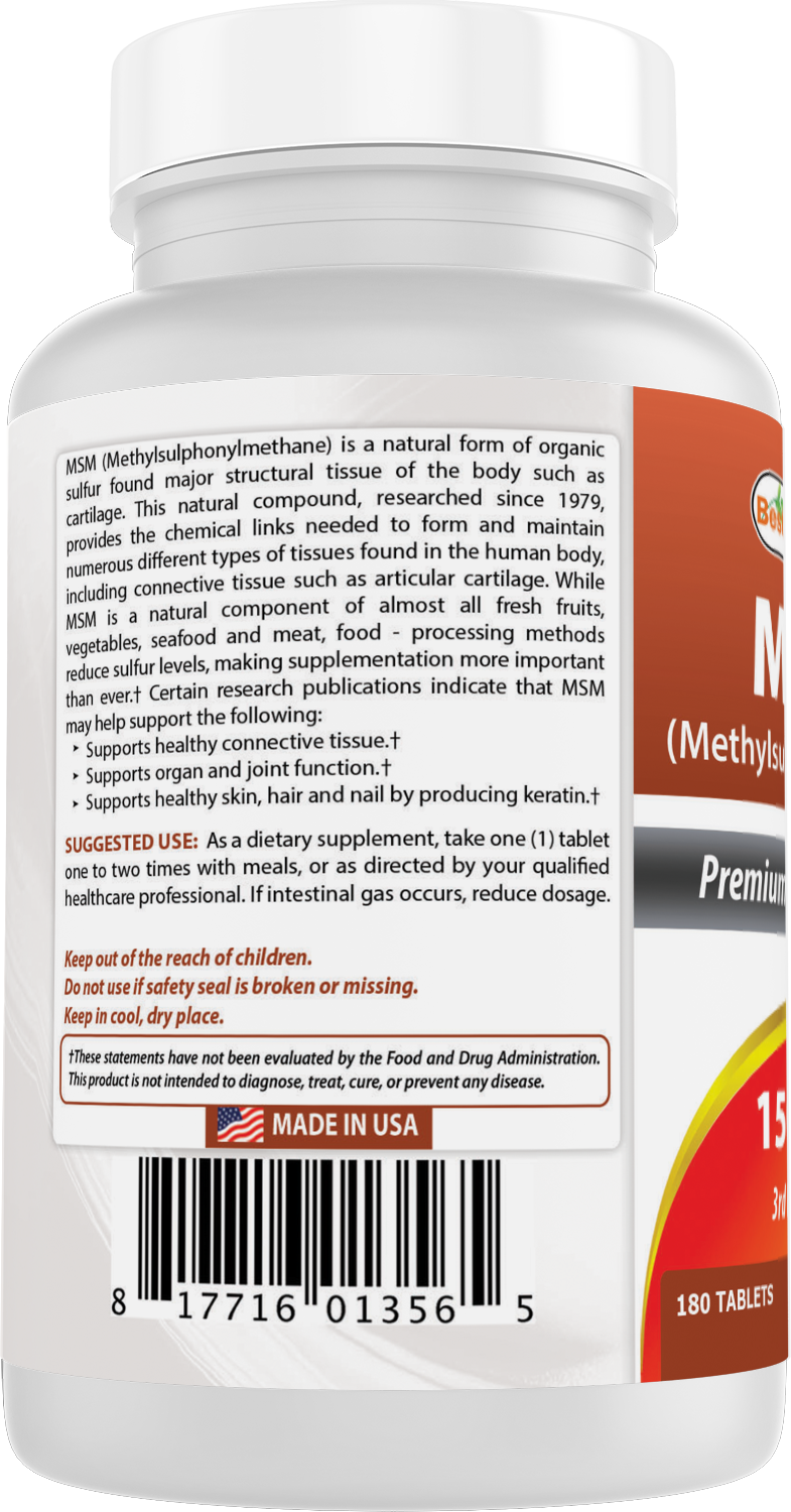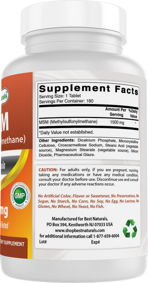 {"id":4790959997065,"title":"Best Naturals MSM 1500 mg 180 Tablets","handle":"best-naturals-msm-1500-mg-180-tablets","description":"\u003cul\u003e\n\u003cli style=\"font-weight: 400;\"\u003e\u003cspan style=\"font-weight: 400;\"\u003e3rd Party Lab Tested for Purity \u0026amp; Quality.\u003c\/span\u003e\u003c\/li\u003e\n\u003cli style=\"font-weight: 400;\"\u003e\u003cspan style=\"font-weight: 400;\"\u003e1500 mg of MSM per Tablet - 180 Tablets per Bottle.\u003c\/span\u003e\u003c\/li\u003e\n\u003cli style=\"font-weight: 400;\"\u003e\u003cspan style=\"font-weight: 400;\"\u003eNon-GMO \u0026amp; Gluten-Free.\u003c\/span\u003e\u003c\/li\u003e\n\u003cli style=\"font-weight: 400;\"\u003e\u003cspan style=\"font-weight: 400;\"\u003eProudly Made in USA, GMP Compliant, FDA Registered Facility.\u003c\/span\u003e\u003c\/li\u003e\n\u003cli style=\"font-weight: 400;\"\u003e\u003cspan style=\"font-weight: 400;\"\u003eNo Artificial Color, Flavor, or Sweetener, No Preservatives, No Sugar, No Milk, No Corn, No Soy, No Egg, No Lactose, No Gluten, No Wheat, No Yeast, No Fish. Sodium Free.\u003c\/span\u003e\u003c\/li\u003e\n\u003c\/ul\u003e","published_at":"2020-04-02T05:26:24-04:00","created_at":"2020-04-02T07:05:59-04:00","vendor":"shopbestnaturals.com","type":"","tags":["Supplements"],"price":1099,"price_min":1099,"price_max":1099,"available":true,"price_varies":false,"compare_at_price":2299,"compare_at_price_min":2299,"compare_at_price_max":2299,"compare_at_price_varies":false,"variants":[{"id":33182197350537,"title":"Default Title","option1":"Default Title","option2":null,"option3":null,"sku":"817716013565","requires_shipping":true,"taxable":false,"featured_image":null,"available":true,"name":"Best Naturals MSM 1500 mg 180 Tablets","public_title":null,"options":["Default Title"],"price":1099,"weight":367,"compare_at_price":2299,"inventory_management":"shopify","barcode":"817716013565","requires_selling_plan":false,"selling_plan_allocations":[]}],"images":["\/\/shopbestnaturals-com.myshopify.com\/cdn\/shop\/products\/Image-1_49345758-9265-42c3-a782-bb2c171da41e.jpg?v=1749676271","\/\/shopbestnaturals-com.myshopify.com\/cdn\/shop\/files\/Image-4_01859335-7c22-46cc-b7c6-8f595cc40f35.jpg?v=1757447777","\/\/shopbestnaturals-com.myshopify.com\/cdn\/shop\/files\/Image-5_406ef178-39b9-4123-b21f-e06c03f5ca85.jpg?v=1757447778","\/\/shopbestnaturals-com.myshopify.com\/cdn\/shop\/files\/Image-6_bef2612d-8555-41f3-8767-b5ed2fd58fe0.jpg?v=1757447778","\/\/shopbestnaturals-com.myshopify.com\/cdn\/shop\/files\/Image-7_326a7194-7b37-44f6-95da-84a43c7bb354.jpg?v=1757447778","\/\/shopbestnaturals-com.myshopify.com\/cdn\/shop\/files\/Image-2_4ecd1059-b2ec-49ed-b4da-0a35e1cdec5d.png?v=1757447778","\/\/shopbestnaturals-com.myshopify.com\/cdn\/shop\/files\/Image-3_cb6072dd-a696-4a1c-b470-4bb8ccfa03ed.png?v=1757447777"],"featured_image":"\/\/shopbestnaturals-com.myshopify.com\/cdn\/shop\/products\/Image-1_49345758-9265-42c3-a782-bb2c171da41e.jpg?v=1749676271","options":["Title"],"media":[{"alt":null,"id":32971641749721,"position":1,"preview_image":{"aspect_ratio":0.525,"height":2574,"width":1351,"src":"\/\/shopbestnaturals-com.myshopify.com\/cdn\/shop\/products\/Image-1_49345758-9265-42c3-a782-bb2c171da41e.jpg?v=1749676271"},"aspect_ratio":0.525,"height":2574,"media_type":"image","src":"\/\/shopbestnaturals-com.myshopify.com\/cdn\/shop\/products\/Image-1_49345758-9265-42c3-a782-bb2c171da41e.jpg?v=1749676271","width":1351},{"alt":null,"id":37717945188569,"position":2,"preview_image":{"aspect_ratio":1.0,"height":1500,"width":1500,"src":"\/\/shopbestnaturals-com.myshopify.com\/cdn\/shop\/files\/Image-4_01859335-7c22-46cc-b7c6-8f595cc40f35.jpg?v=1757447777"},"aspect_ratio":1.0,"height":1500,"media_type":"image","src":"\/\/shopbestnaturals-com.myshopify.com\/cdn\/shop\/files\/Image-4_01859335-7c22-46cc-b7c6-8f595cc40f35.jpg?v=1757447777","width":1500},{"alt":null,"id":37717945221337,"position":3,"preview_image":{"aspect_ratio":1.0,"height":1500,"width":1500,"src":"\/\/shopbestnaturals-com.myshopify.com\/cdn\/shop\/files\/Image-5_406ef178-39b9-4123-b21f-e06c03f5ca85.jpg?v=1757447778"},"aspect_ratio":1.0,"height":1500,"media_type":"image","src":"\/\/shopbestnaturals-com.myshopify.com\/cdn\/shop\/files\/Image-5_406ef178-39b9-4123-b21f-e06c03f5ca85.jpg?v=1757447778","width":1500},{"alt":null,"id":37717945254105,"position":4,"preview_image":{"aspect_ratio":1.0,"height":1500,"width":1500,"src":"\/\/shopbestnaturals-com.myshopify.com\/cdn\/shop\/files\/Image-6_bef2612d-8555-41f3-8767-b5ed2fd58fe0.jpg?v=1757447778"},"aspect_ratio":1.0,"height":1500,"media_type":"image","src":"\/\/shopbestnaturals-com.myshopify.com\/cdn\/shop\/files\/Image-6_bef2612d-8555-41f3-8767-b5ed2fd58fe0.jpg?v=1757447778","width":1500},{"alt":null,"id":37717945286873,"position":5,"preview_image":{"aspect_ratio":1.0,"height":1500,"width":1500,"src":"\/\/shopbestnaturals-com.myshopify.com\/cdn\/shop\/files\/Image-7_326a7194-7b37-44f6-95da-84a43c7bb354.jpg?v=1757447778"},"aspect_ratio":1.0,"height":1500,"media_type":"image","src":"\/\/shopbestnaturals-com.myshopify.com\/cdn\/shop\/files\/Image-7_326a7194-7b37-44f6-95da-84a43c7bb354.jpg?v=1757447778","width":1500},{"alt":null,"id":37717945319641,"position":6,"preview_image":{"aspect_ratio":0.523,"height":1500,"width":785,"src":"\/\/shopbestnaturals-com.myshopify.com\/cdn\/shop\/files\/Image-2_4ecd1059-b2ec-49ed-b4da-0a35e1cdec5d.png?v=1757447778"},"aspect_ratio":0.523,"height":1500,"media_type":"image","src":"\/\/shopbestnaturals-com.myshopify.com\/cdn\/shop\/files\/Image-2_4ecd1059-b2ec-49ed-b4da-0a35e1cdec5d.png?v=1757447778","width":785},{"alt":null,"id":37717945352409,"position":7,"preview_image":{"aspect_ratio":0.523,"height":1500,"width":785,"src":"\/\/shopbestnaturals-com.myshopify.com\/cdn\/shop\/files\/Image-3_cb6072dd-a696-4a1c-b470-4bb8ccfa03ed.png?v=1757447777"},"aspect_ratio":0.523,"height":1500,"media_type":"image","src":"\/\/shopbestnaturals-com.myshopify.com\/cdn\/shop\/files\/Image-3_cb6072dd-a696-4a1c-b4