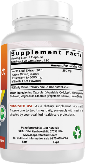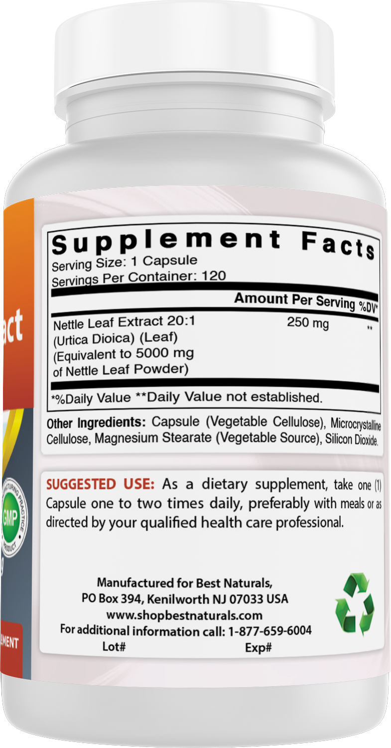 {"id":8685861077209,"title":"Best Naturals Nettle Leaf Extract 5000 mg Equivalent Per Serving- 120 Capsules","handle":"best-naturals-nettle-leaf-extract-5000-mg-equivalent-per-serving-120-capsules","description":"\u003cul class=\"a-unordered-list a-vertical a-spacing-mini\" data-mce-fragment=\"1\"\u003e\n\u003cli class=\"a-spacing-mini\" data-mce-fragment=\"1\"\u003e\u003cspan class=\"a-list-item\" data-mce-fragment=\"1\"\u003e3rd Party Lab Tested for Purity \u0026amp; Quality.\u003c\/span\u003e\u003c\/li\u003e\n\u003cli class=\"a-spacing-mini\" data-mce-fragment=\"1\"\u003e\u003cspan class=\"a-list-item\" data-mce-fragment=\"1\"\u003e5000 mg Equivalent Nettle Leaf Extract per Serving- 120 Capsules\u003c\/span\u003e\u003c\/li\u003e\n\u003cli class=\"a-spacing-mini\" data-mce-fragment=\"1\"\u003e\u003cspan class=\"a-list-item\" data-mce-fragment=\"1\"\u003eNon-GMO \u0026amp; Gluten-Free.\u003c\/span\u003e\u003c\/li\u003e\n\u003cli class=\"a-spacing-mini\" data-mce-fragment=\"1\"\u003e\u003cspan class=\"a-list-item\" data-mce-fragment=\"1\"\u003eProudly Made in USA, GMP Compliant, FDA Registered Facility.\u003c\/span\u003e\u003c\/li\u003e\n\u003cli class=\"a-spacing-mini\" data-mce-fragment=\"1\"\u003e\u003cspan class=\"a-list-item\" data-mce-fragment=\"1\"\u003eNo Artificial Color, Flavor, or Sweetener, No Preservatives, No Sugar, No Milk, No Corn, No Soy, No Egg, No Lactose, No Gluten, No Wheat, No Yeast, No Fish. Sodium Free.\u003c\/span\u003e\u003c\/li\u003e\n\u003c\/ul\u003e","published_at":"2024-04-12T17:21:16-04:00","created_at":"2024-04-12T17:21:16-04:00","vendor":"shopbestnaturals.com","type":"","tags":["Herbal Products","Supplements"],"price":999,"price_min":999,"price_max":999,"available":true,"price_varies":false,"compare_at_price":1999,"compare_at_price_min":1999,"compare_at_price_max":1999,"compare_at_price_varies":false,"variants":[{"id":45091535388889,"title":"Default Title","option1":"Default Title","option2":null,"option3":null,"sku":"817716019833","requires_shipping":true,"taxable":true,"featured_image":null,"available":true,"name":"Best Naturals Nettle Leaf Extract 5000 mg Equivalent Per Serving- 120 Capsules","public_title":null,"options":["Default Title"],"price":999,"weight":340,"compare_at_price":1999,"inventory_management":"shopify","barcode":"817716019833","requires_selling_plan":false,"selling_plan_allocations":[]}],"images":["\/\/shopbestnaturals-com.myshopify.com\/cdn\/shop\/files\/Image-1_4847faf8-3303-4ef2-be32-70e1fb70a591.jpg?v=1749677880","\/\/shopbestnaturals-com.myshopify.com\/cdn\/shop\/files\/Image-4_c7bfbe5e-a267-4445-afe5-e05e87ab3f09.jpg?v=1757447915","\/\/shopbestnaturals-com.myshopify.com\/cdn\/shop\/files\/Image-5_e59f9ace-73e5-43f3-b899-45335f45f06e.jpg?v=1757447915","\/\/shopbestnaturals-com.myshopify.com\/cdn\/shop\/files\/Image-6_040b11ed-3ae2-4eba-bda9-157f5ba7db09.jpg?v=1757447915","\/\/shopbestnaturals-com.myshopify.com\/cdn\/shop\/files\/Image-7_ee031c5a-201f-486b-8b66-4dfb81d1c09c.jpg?v=1757447915","\/\/shopbestnaturals-com.myshopify.com\/cdn\/shop\/files\/Image-2_54b9ddae-7e71-48d6-afe7-0e780a2c2632.png?v=1757447915","\/\/shopbestnaturals-com.myshopify.com\/cdn\/shop\/files\/Image-3_ff69429d-e55b-4498-b414-b52cacf6d66d.png?v=1757447915"],"featured_image":"\/\/shopbestnaturals-com.myshopify.com\/cdn\/shop\/files\/Image-1_4847faf8-3303-4ef2-be32-70e1fb70a591.jpg?v=1749677880","options":["Title"],"media":[{"alt":null,"id":34665064759513,"position":1,"preview_image":{"aspect_ratio":0.515,"height":2585,"width":1330,"src":"\/\/shopbestnaturals-com.myshopify.com\/cdn\/shop\/files\/Image-1_4847faf8-3303-4ef2-be32-70e1fb70a591.jpg?v=1749677880"},"aspect_ratio":0.515,"height":2585,"media_type":"image","src":"\/\/shopbestnaturals-com.myshopify.com\/cdn\/shop\/files\/Image-1_4847faf8-3303-4ef2-be32-70e1fb70a591.jpg?v=1749677880","width":1330},{"alt":null,"id":37717954887897,"position":2,"preview_image":{"aspect_ratio":1.0,"height":1500,"width":1500,"src":"\/\/shopbestnaturals-com.myshopify.com\/cdn\/shop\/files\/Image-4_c7bfbe5e-a267-4445-afe5-e05e87ab3f09.jpg?v=1757447915"},"aspect_ratio":1.0,"height":1500,"media_type":"image","src":"\/\/shopbestnaturals-com.myshopify.com\/cdn\/shop\/files\/Image-4_c7bfbe5e-a267-4445-afe5-e05e87ab3f09.jpg?v=1757447915","width":1500},{"alt":null,"id":37717954920665,"position":3,"preview_image":{"aspect_ratio":1.0,"height":1500,"width":1500,"src":"\/\/shopbestnaturals-com.myshopify.com\/cdn\/shop\/files\/Image-5_e59f9ace-73e5-43f3-b899-45335f45f06e.jpg?v=1757447915"},"aspect_ratio":1.0,"height":1500,"media_type":"image","src":"\/\/shopbestnaturals-com.myshopify.com\/cdn\/shop\/files\/Image-5_e59f9ace-73e5-43f3-b899-45335f45f06e.jpg?v=1757447915","width":1500},{"alt":null,"id":37717954953433,"position":4,"preview_image":{"aspect_ratio":1.0,"height":1500,"width":1500,"src":"\/\/shopbestnaturals-com.myshopify.com\/cdn\/shop\/files\/Image-6_040b11ed-3ae2-4eba-bda9-157f5ba7db09.jpg?v=1757447915"},"aspect_ratio":1.0,"height":1500,"media_type":"image","src":"\/\/shopbestnaturals-com.myshopify.com\/cdn\/shop\/files\/Image-6_040b11ed-3ae2-4eba-bda9-157f5ba7db09.jpg?v=1757447915","width":1500},{"alt":null,"id":37717954986201,"position":5,"preview_image":{"aspect_ratio":1.0,"height":1500,"width":1500,"src":"\/\/shopbestnaturals-com.myshopify.com\/cdn\/shop\/files\/Image-7_ee031c5a-201f-486b-8b66-4dfb81d1c09c.jpg?v=1757447915"},"aspect_ratio":1.0,"height":1500,"media_type":"image","src":"\/\/shopbestnaturals-com.myshopify.com\/cdn\/shop\/files\/Image-7_ee031c5a-201f-486b-8b66-4dfb81d1c09c.jpg?v=1757447915","width":1500},{"alt":null,"id":37717955018969,"position":6,"preview_image":{"aspect_ratio":0.523,"height":1500,"width":785,"src":"\/\/shopbestnaturals-com.myshopify.com\/cdn\/shop\/files\/Image-2_54b9ddae-7e71-48d6-afe7-0e780a2c2632.png?v=1757447915"},"aspect_ratio":0.523,"height":1500,"media_type":"image","src":"\/\/shopbestnaturals-com.myshopify.com\/cdn\/shop\/files\/Image-2_54b9ddae-7e71-48d6-afe7-0e780a2c2632.png?v=17574