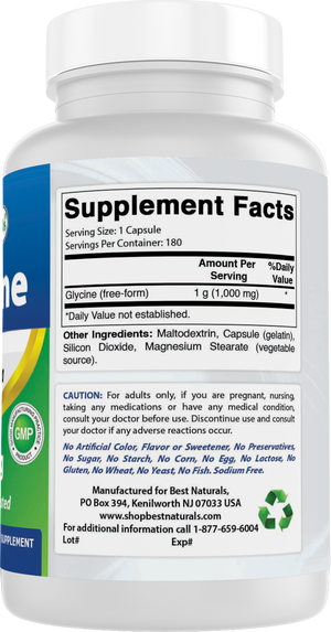 {"id":4525295927433,"title":"Best Naturals Glycine 1000 mg 180 Capsules","handle":"best-naturals-glycine-1000-mg-180-capsules","description":"\u003cul class=\"a-unordered-list a-vertical a-spacing-none\"\u003e\n\u003cli style=\"font-weight: 400;\"\u003e\u003cspan style=\"font-weight: 400;\"\u003e3rd Party Lab Tested for Purity \u0026amp; Quality.\u003c\/span\u003e\u003c\/li\u003e\n\u003cli style=\"font-weight: 400;\"\u003e\u003cspan style=\"font-weight: 400;\"\u003e1000 mg of Glycine per Capsule - 180 Capsules per Bottle.\u003c\/span\u003e\u003c\/li\u003e\n\u003cli style=\"font-weight: 400;\"\u003e\u003cspan style=\"font-weight: 400;\"\u003eNon-GMO \u0026amp; Gluten-Free.\u003c\/span\u003e\u003c\/li\u003e\n\u003cli style=\"font-weight: 400;\"\u003e\u003cspan style=\"font-weight: 400;\"\u003eProudly Made in USA, GMP Compliant, FDA Registered Facility.\u003c\/span\u003e\u003c\/li\u003e\n\u003cli style=\"font-weight: 400;\"\u003e\u003cspan style=\"font-weight: 400;\"\u003eNo Artificial Color, Flavor, or Sweetener, No Preservatives, No Sugar, No Milk, No Corn, No Soy, No Egg, No Lactose, No Gluten, No Wheat, No Yeast, No Fish. Sodium Free.\u003c\/span\u003e\u003c\/li\u003e\n\u003c\/ul\u003e","published_at":"2020-02-02T02:21:52-05:00","created_at":"2020-02-02T07:41:17-05:00","vendor":"shopbestnaturals.com","type":"","tags":["Supplements"],"price":1299,"price_min":1299,"price_max":1299,"available":false,"price_varies":false,"compare_at_price":3499,"compare_at_price_min":3499,"compare_at_price_max":3499,"compare_at_price_varies":false,"variants":[{"id":32057974194313,"title":"Default Title","option1":"Default Title","option2":null,"option3":null,"sku":"817716014159","requires_shipping":true,"taxable":false,"featured_image":null,"available":false,"name":"Best Naturals Glycine 1000 mg 180 Capsules","public_title":null,"options":["Default Title"],"price":1299,"weight":336,"compare_at_price":3499,"inventory_management":"shopify","barcode":"817716014159","requires_selling_plan":false,"selling_plan_allocations":[]}],"images":["\/\/shopbestnaturals-com.myshopify.com\/cdn\/shop\/products\/Image-1_439c9495-bcf9-47fa-9de7-7bdb636666ef.jpg?v=1749675748","\/\/shopbestnaturals-com.myshopify.com\/cdn\/shop\/files\/Image-4_e0c747af-8a11-4db5-9684-7e76deaaf29c.jpg?v=1757013131","\/\/shopbestnaturals-com.myshopify.com\/cdn\/shop\/files\/Image-5_0280019e-5669-4fd8-b05f-0bdeca23eac2.jpg?v=1757013130","\/\/shopbestnaturals-com.myshopify.com\/cdn\/shop\/files\/Image-6_73fdeff7-95ec-45fe-a826-ed2d08ed94ab.jpg?v=1757013131","\/\/shopbestnaturals-com.myshopify.com\/cdn\/shop\/files\/Image-7_c75a0e01-2941-4c0b-81f3-acdb024eb859.jpg?v=1757013131","\/\/shopbestnaturals-com.myshopify.com\/cdn\/shop\/files\/Image-2_5a69a06b-eb5a-4232-8d89-f9b253d96394.png?v=1757013131","\/\/shopbestnaturals-com.myshopify.com\/cdn\/shop\/files\/Image-3_56cbf8fe-72c3-4c6c-9524-2eeea74bdb09.png?v=1757013131"],"featured_image":"\/\/shopbestnaturals-com.myshopify.com\/cdn\/shop\/products\/Image-1_439c9495-bcf9-47fa-9de7-7bdb636666ef.jpg?v=1749675748","options":["Title"],"media":[{"alt":"Best Naturals Glycine 1000 mg 180 Capsules - shopbestnaturals.com","id":23087342715041,"position":1,"preview_image":{"aspect_ratio":0.525,"height":2574,"width":1351,"src":"\/\/shopbestnaturals-com.myshopify.com\/cdn\/shop\/products\/Image-1_439c9495-bcf9-47fa-9de7-7bdb636666ef.jpg?v=1749675748"},"aspect_ratio":0.525,"height":2574,"media_type":"image","src":"\/\/shopbestnaturals-com.myshopify.com\/cdn\/shop\/products\/Image-1_439c9495-bcf9-47fa-9de7-7bdb636666ef.jpg?v=1749675748","width":1351},{"alt":null,"id":37699198714073,"position":2,"preview_image":{"aspect_ratio":1.0,"height":1500,"width":1500,"src":"\/\/shopbestnaturals-com.myshopify.com\/cdn\/shop\/files\/Image-4_e0c747af-8a11-4db5-9684-7e76deaaf29c.jpg?v=1757013131"},"aspect_ratio":1.0,"height":1500,"media_type":"image","src":"\/\/shopbestnaturals-com.myshopify.com\/cdn\/shop\/files\/Image-4_e0c747af-8a11-4db5-9684-7e76deaaf29c.jpg?v=1757013131","width":1500},{"alt":null,"id":37699198746841,"position":3,"preview_image":{"aspect_ratio":1.0,"height":1500,"width":1500,"src":"\/\/shopbestnaturals-com.myshopify.com\/cdn\/shop\/files\/Image-5_0280019e-5669-4fd8-b05f-0bdeca23eac2.jpg?v=1757013130"},"aspect_ratio":1.0,"height":1500,"media_type":"image","src":"\/\/shopbestnaturals-com.myshopify.com\/cdn\/shop\/files\/Image-5_0280019e-5669-4fd8-b05f-0bdeca23eac2.jpg?v=1757013130","width":1500},{"alt":null,"id":37699198779609,"position":4,"preview_image":{"aspect_ratio":1.0,"height":1500,"width":1500,"src":"\/\/shopbestnaturals-com.myshopify.com\/cdn\/shop\/files\/Image-6_73fdeff7-95ec-45fe-a826-ed2d08ed94ab.jpg?v=1757013131"},"aspect_ratio":1.0,"height":1500,"media_type":"image","src":"\/\/shopbestnaturals-com.myshopify.com\/cdn\/shop\/files\/Image-6_73fdeff7-95ec-45fe-a826-ed2d08ed94ab.jpg?v=1757013131","width":1500},{"alt":null,"id":37699198812377,"position":5,"preview_image":{"aspect_ratio":1.0,"height":1500,"width":1500,"src":"\/\/shopbestnaturals-com.myshopify.com\/cdn\/shop\/files\/Image-7_c75a0e01-2941-4c0b-81f3-acdb024eb859.jpg?v=1757013131"},"aspect_ratio":1.0,"height":1500,"media_type":"image","src":"\/\/shopbestnaturals-com.myshopify.com\/cdn\/shop\/files\/Image-7_c75a0e01-2941-4c0b-81f3-acdb024eb859.jpg?v=1757013131","width":1500},{"alt":null,"id":37699198845145,"position":6,"preview_image":{"aspect_ratio":0.523,"height":1500,"width":785,"src":"\/\/shopbestnaturals-com.myshopify.com\/cdn\/shop\/files\/Image-2_5a69a06b-eb5a-4232-8d89-f9b253d96394.png?v=1757013131"},"aspect_ratio":0.523,"height":1500,"media_type":"image","src":"\/\/shopbestnaturals-com.myshopify.com\/cdn\/shop\/files\/Image-2_5a69a06b-eb5a-4232-8d89-f9b253d96394.png?v=1757013131","width":785},{"alt":null,"id":37699198877913,"position":7,"preview_image":{"aspect_ratio":0.523,"height":1500,"width":785,"src":"\/\/shopbestnaturals-com.myshopify.com\/cdn\/shop\/files\/Image-3_56cbf8fe-72c3-4c6c-9524-2eeea74bdb09.png?v=1757013131"},"aspect_rat