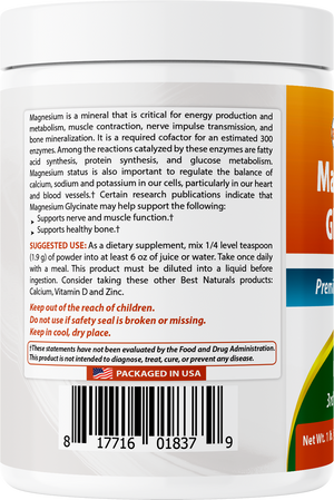 Best Naturals Magnesium Glycinate 1 Lb Pure Powder