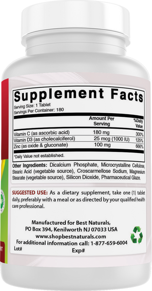 {"id":8947777274073,"title":"Best Naturals Zinc 100 mg with Vitamin C \u0026 D3 180 Tablets Gluten Free and Non-GMO","handle":"best-naturals-zinc-100-mg-with-vitamin-c-d3-180-tablets-gluten-free-and-non-gmo","description":"\u003cul class=\"a-unordered-list a-vertical a-spacing-mini\"\u003e\n\u003cli class=\"a-spacing-mini\"\u003e\u003cspan class=\"a-list-item\"\u003e3rd Party Lab Tested for Purity \u0026amp; Quality.\u003c\/span\u003e\u003c\/li\u003e\n\u003cli class=\"a-spacing-mini\"\u003e\u003cspan class=\"a-list-item\"\u003e100 mg of Zinc, 25 mg of Vitamin D3, and 180 mg of Vitamin C per Serving- 180 Tablets\u003c\/span\u003e\u003c\/li\u003e\n\u003cli class=\"a-spacing-mini\"\u003e\u003cspan class=\"a-list-item\"\u003eNon-GMO \u0026amp; Gluten-Free.\u003c\/span\u003e\u003c\/li\u003e\n\u003cli class=\"a-spacing-mini\"\u003e\u003cspan class=\"a-list-item\"\u003eProudly Made in USA, GMP Compliant, FDA Registered Facility.\u003c\/span\u003e\u003c\/li\u003e\n\u003cli class=\"a-spacing-mini\"\u003e\u003cspan class=\"a-list-item\"\u003eNo Artificial Color, Flavor, or Sweetener, No Preservatives, No Sugar, No Milk, No Corn, No Soy, No Egg, No Lactose, No Gluten, No Wheat, No Yeast, No Fish. Sodium Free.\u003c\/span\u003e\u003c\/li\u003e\n\u003c\/ul\u003e\n\u003c!----\u003e","published_at":"2024-07-23T14:29:46-04:00","created_at":"2024-07-23T14:29:46-04:00","vendor":"shopbestnaturals.com","type":"","tags":[],"price":999,"price_min":999,"price_max":999,"available":true,"price_varies":false,"compare_at_price":1999,"compare_at_price_min":1999,"compare_at_price_max":1999,"compare_at_price_varies":false,"variants":[{"id":45726466015449,"title":"Default Title","option1":"Default Title","option2":null,"option3":null,"sku":"817716019871","requires_shipping":true,"taxable":true,"featured_image":null,"available":true,"name":"Best Naturals Zinc 100 mg with Vitamin C \u0026 D3 180 Tablets Gluten Free and Non-GMO","public_title":null,"options":["Default Title"],"price":999,"weight":159,"compare_at_price":1999,"inventory_management":"shopify","barcode":"817716019871","requires_selling_plan":false,"selling_plan_allocations":[]}],"images":["\/\/shopbestnaturals-com.myshopify.com\/cdn\/shop\/files\/Image-1_95f98e96-7de8-4951-a8a8-c4e95a2b20a7.jpg?v=1749677924","\/\/shopbestnaturals-com.myshopify.com\/cdn\/shop\/files\/Image-4_d0fe5918-4435-4cbf-9ef8-85a3ea67fc3a.png?v=1758572067","\/\/shopbestnaturals-com.myshopify.com\/cdn\/shop\/files\/Image-5_8f4f51f8-c487-46eb-9109-b44bb9105680.png?v=1758572067","\/\/shopbestnaturals-com.myshopify.com\/cdn\/shop\/files\/Image-6_c9929ad1-7e28-4fd4-bb0f-6b547c30b391.jpg?v=1758572067","\/\/shopbestnaturals-com.myshopify.com\/cdn\/shop\/files\/Image-7_4134ea64-8dc9-4db7-8ae0-fc2b9803e1f6.jpg?v=1758572066","\/\/shopbestnaturals-com.myshopify.com\/cdn\/shop\/files\/Image-2_52f07dcf-ac13-47cb-88cd-3ec4bd847ae5.png?v=1758572067","\/\/shopbestnaturals-com.myshopify.com\/cdn\/shop\/files\/Image-3_ee8ae671-622c-41c1-bf5e-c7c1cb3d1d99.png?v=1758572066"],"featured_image":"\/\/shopbestnaturals-com.myshopify.com\/cdn\/shop\/files\/Image-1_95f98e96-7de8-4951-a8a8-c4e95a2b20a7.jpg?v=1749677924","options":["Title"],"media":[{"alt":null,"id":35501093585113,"position":1,"preview_image":{"aspect_ratio":0.523,"height":2541,"width":1330,"src":"\/\/shopbestnaturals-com.myshopify.com\/cdn\/shop\/files\/Image-1_95f98e96-7de8-4951-a8a8-c4e95a2b20a7.jpg?v=1749677924"},"aspect_ratio":0.523,"height":2541,"media_type":"image","src":"\/\/shopbestnaturals-com.myshopify.com\/cdn\/shop\/files\/Image-1_95f98e96-7de8-4951-a8a8-c4e95a2b20a7.jpg?v=1749677924","width":1330},{"alt":null,"id":37766675300569,"position":2,"preview_image":{"aspect_ratio":1.0,"height":1500,"width":1500,"src":"\/\/shopbestnaturals-com.myshopify.com\/cdn\/shop\/files\/Image-4_d0fe5918-4435-4cbf-9ef8-85a3ea67fc3a.png?v=1758572067"},"aspect_ratio":1.0,"height":1500,"media_type":"image","src":"\/\/shopbestnaturals-com.myshopify.com\/cdn\/shop\/files\/Image-4_d0fe5918-4435-4cbf-9ef8-85a3ea67fc3a.png?v=1758572067","width":1500},{"alt":null,"id":37766675398873,"position":3,"preview_image":{"aspect_ratio":1.0,"height":1500,"width":1500,"src":"\/\/shopbestnaturals-com.myshopify.com\/cdn\/shop\/files\/Image-5_8f4f51f8-c487-46eb-9109-b44bb9105680.png?v=1758572067"},"aspect_ratio":1.0,"height":1500,"media_type":"image","src":"\/\/shopbestnaturals-com.myshopify.com\/cdn\/shop\/files\/Image-5_8f4f51f8-c487-46eb-9109-b44bb9105680.png?v=1758572067","width":1500},{"alt":null,"id":37766675431641,"position":4,"preview_image":{"aspect_ratio":1.0,"height":1500,"width":1500,"src":"\/\/shopbestnaturals-com.myshopify.com\/cdn\/shop\/files\/Image-6_c9929ad1-7e28-4fd4-bb0f-6b547c30b391.jpg?v=1758572067"},"aspect_ratio":1.0,"height":1500,"media_type":"image","src":"\/\/shopbestnaturals-com.myshopify.com\/cdn\/shop\/files\/Image-6_c9929ad1-7e28-4fd4-bb0f-6b547c30b391.jpg?v=1758572067","width":1500},{"alt":null,"id":37766675464409,"position":5,"preview_image":{"aspect_ratio":1.0,"height":1500,"width":1500,"src":"\/\/shopbestnaturals-com.myshopify.com\/cdn\/shop\/files\/Image-7_4134ea64-8dc9-4db7-8ae0-fc2b9803e1f6.jpg?v=1758572066"},"aspect_ratio":1.0,"height":1500,"media_type":"image","src":"\/\/shopbestnaturals-com.myshopify.com\/cdn\/shop\/files\/Image-7_4134ea64-8dc9-4db7-8ae0-fc2b9803e1f6.jpg?v=1758572066","width":1500},{"alt":null,"id":37766675497177,"position":6,"preview_image":{"aspect_ratio":0.523,"height":1500,"width":785,"src":"\/\/shopbestnaturals-com.myshopify.com\/cdn\/shop\/files\/Image-2_52f07dcf-ac13-47cb-88cd-3ec4bd847ae5.png?v=1758572067"},"aspect_ratio":0.523,"height":1500,"media_type":"image","src":"\/\/shopbestnaturals-com.myshopify.com\/cdn\/shop\/files\/Image-2_52f07dcf-ac13-47cb-88cd-3ec4bd847ae5.png?v=1758572067","width":785},{"alt":null,"id":37766675595481,"position":7,"preview_image":{"aspect_ratio":0.523,"height":1500,"width":785,"src":"\/\/shopbestnaturals-com.myshopify.com\/cdn\/shop\/files\/Image-3_ee8ae671-622c-41c1-bf5e-c7c1cb3d1d9
