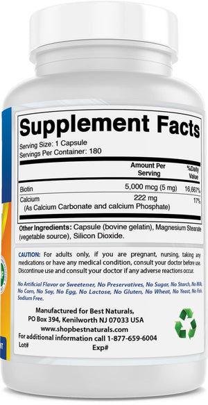 {"id":4512933347465,"title":"Best Naturals Biotin 5 mg 180 capsules","handle":"best-naturals-biotin-5-mg-180-capsules","description":"\u003cul class=\"a-unordered-list a-vertical a-spacing-none\"\u003e\n\u003cli style=\"font-weight: 400;\"\u003e\u003cspan style=\"font-weight: 400;\"\u003e3rd Party Lab Tested for Purity \u0026amp; Quality.\u003c\/span\u003e\u003c\/li\u003e\n\u003cli style=\"font-weight: 400;\"\u003e\u003cspan style=\"font-weight: 400;\"\u003e5,000 mcg (5 mg) of Biotin per Capsule - 180 Capsules per Bottle.\u003c\/span\u003e\u003c\/li\u003e\n\u003cli style=\"font-weight: 400;\"\u003e\u003cspan style=\"font-weight: 400;\"\u003eNon-GMO \u0026amp; Gluten Free.\u003c\/span\u003e\u003c\/li\u003e\n\u003cli style=\"font-weight: 400;\"\u003e\u003cspan style=\"font-weight: 400;\"\u003eProudly Made in USA, GMP Compliant, FDA Registered Facility.\u003c\/span\u003e\u003c\/li\u003e\n\u003cli style=\"font-weight: 400;\"\u003e\u003cspan style=\"font-weight: 400;\"\u003eNo Artificial Color, Flavor, or Sweetener, No Preservatives, No Sugar, No Milk, No Corn, No Soy, No Egg, No Lactose, No Gluten, No Wheat, No Yeast, No Fish. Sodium Free.\u003c\/span\u003e\u003c\/li\u003e\n\u003c\/ul\u003e","published_at":"2020-01-27T10:18:54-05:00","created_at":"2020-01-27T10:49:46-05:00","vendor":"shopbestnaturals.com","type":"","tags":["A to Z Vitamins"],"price":1000,"price_min":1000,"price_max":1000,"available":true,"price_varies":false,"compare_at_price":1999,"compare_at_price_min":1999,"compare_at_price_max":1999,"compare_at_price_varies":false,"variants":[{"id":31982912635017,"title":"Default Title","option1":"Default Title","option2":null,"option3":null,"sku":"817716013220","requires_shipping":true,"taxable":false,"featured_image":null,"available":true,"name":"Best Naturals Biotin 5 mg 180 capsules","public_title":null,"options":["Default Title"],"price":1000,"weight":172,"compare_at_price":1999,"inventory_management":"shopify","barcode":"817716013220","requires_selling_plan":false,"selling_plan_allocations":[]}],"images":["\/\/shopbestnaturals-com.myshopify.com\/cdn\/shop\/products\/Image-1_7dc1fda3-e05c-4a6d-a50c-c95ae9ff33b8.jpg?v=1749675234","\/\/shopbestnaturals-com.myshopify.com\/cdn\/shop\/products\/Image-2_f54ded37-1b50-40f2-a9df-f7205c7c231e.jpg?v=1749675235","\/\/shopbestnaturals-com.myshopify.com\/cdn\/shop\/products\/Image-3_4e622352-dba8-4667-abd5-1c0a78ac9946.jpg?v=1749675236","\/\/shopbestnaturals-com.myshopify.com\/cdn\/shop\/products\/Image-4_23c27745-e01d-4e55-97c3-ce931b23062b.jpg?v=1749675238","\/\/shopbestnaturals-com.myshopify.com\/cdn\/shop\/products\/Image-5_531ab06a-9ba2-420b-8b8a-ed8f3aae3b85.jpg?v=1749675240","\/\/shopbestnaturals-com.myshopify.com\/cdn\/shop\/products\/Image-6_85bcd662-621f-4fed-a722-e13237f16406.jpg?v=1749675241","\/\/shopbestnaturals-com.myshopify.com\/cdn\/shop\/products\/Image-7_44187279-de03-4f56-bb43-3839f77284f0.jpg?v=1749675242"],"featured_image":"\/\/shopbestnaturals-com.myshopify.com\/cdn\/shop\/products\/Image-1_7dc1fda3-e05c-4a6d-a50c-c95ae9ff33b8.jpg?v=1749675234","options":["Title"],"media":[{"alt":"Best Naturals Biotin 5 mg 180 capsules - shopbestnaturals.com","id":23086912569505,"position":1,"preview_image":{"aspect_ratio":0.525,"height":2574,"width":1351,"src":"\/\/shopbestnaturals-com.myshopify.com\/cdn\/shop\/products\/Image-1_7dc1fda3-e05c-4a6d-a50c-c95ae9ff33b8.jpg?v=1749675234"},"aspect_ratio":0.525,"height":2574,"media_type":"image","src":"\/\/shopbestnaturals-com.myshopify.com\/cdn\/shop\/products\/Image-1_7dc1fda3-e05c-4a6d-a50c-c95ae9ff33b8.jpg?v=1749675234","width":1351},{"alt":"Best Naturals Biotin 5 mg 180 capsules - shopbestnaturals.com","id":23086912635041,"position":2,"preview_image":{"aspect_ratio":1.0,"height":1500,"width":1500,"src":"\/\/shopbestnaturals-com.myshopify.com\/cdn\/shop\/products\/Image-2_f54ded37-1b50-40f2-a9df-f7205c7c231e.jpg?v=1749675235"},"aspect_ratio":1.0,"height":1500,"media_type":"image","src":"\/\/shopbestnaturals-com.myshopify.com\/cdn\/shop\/products\/Image-2_f54ded37-1b50-40f2-a9df-f7205c7c231e.jpg?v=1749675235","width":1500},{"alt":"Best Naturals Biotin 5 mg 180 capsules - shopbestnaturals.com","id":23086912700577,"position":3,"preview_image":{"aspect_ratio":1.0,"height":1500,"width":1500,"src":"\/\/shopbestnaturals-com.myshopify.com\/cdn\/shop\/products\/Image-3_4e622352-dba8-4667-abd5-1c0a78ac9946.jpg?v=1749675236"},"aspect_ratio":1.0,"height":1500,"media_type":"image","src":"\/\/shopbestnaturals-com.myshopify.com\/cdn\/shop\/products\/Image-3_4e622352-dba8-4667-abd5-1c0a78ac9946.jpg?v=1749675236","width":1500},{"alt":"Best Naturals Biotin 5 mg 180 capsules - shopbestnaturals.com","id":23086912733345,"position":4,"preview_image":{"aspect_ratio":1.0,"height":1500,"width":1500,"src":"\/\/shopbestnaturals-com.myshopify.com\/cdn\/shop\/products\/Image-4_23c27745-e01d-4e55-97c3-ce931b23062b.jpg?v=1749675238"},"aspect_ratio":1.0,"height":1500,"media_type":"image","src":"\/\/shopbestnaturals-com.myshopify.com\/cdn\/shop\/products\/Image-4_23c27745-e01d-4e55-97c3-ce931b23062b.jpg?v=1749675238","width":1500},{"alt":"Best Naturals Biotin 5 mg 180 capsules - shopbestnaturals.com","id":23086912766113,"position":5,"preview_image":{"aspect_ratio":0.515,"height":2585,"width":1330,"src":"\/\/shopbestnaturals-com.myshopify.com\/cdn\/shop\/products\/Image-5_531ab06a-9ba2-420b-8b8a-ed8f3aae3b85.jpg?v=1749675240"},"aspect_ratio":0.515,"height":2585,"media_type":"image","src":"\/\/shopbestnaturals-com.myshopify.com\/cdn\/shop\/products\/Image-5_531ab06a-9ba2-420b-8b8a-ed8f3aae3b85.jpg?v=1749675240","width":1330},{"alt":"Best Naturals Biotin 5 mg 180 capsules - shopbestnaturals.com","id":23086912798881,"position":6,"preview_image":{"aspect_ratio":0.515,"height":2585,"width":1330,"src":"\/\/shopbestnaturals-com.myshopify.com\/cdn\/shop\/products\/Image-6_85bcd662-621f-4fed-a722-e13237f16406.jpg?v=1749675241"},"aspect_ratio":0.515,"height":2585,"media_type":"image","src":"\/\/shopbestnaturals-com.myshopify.com\/cdn\