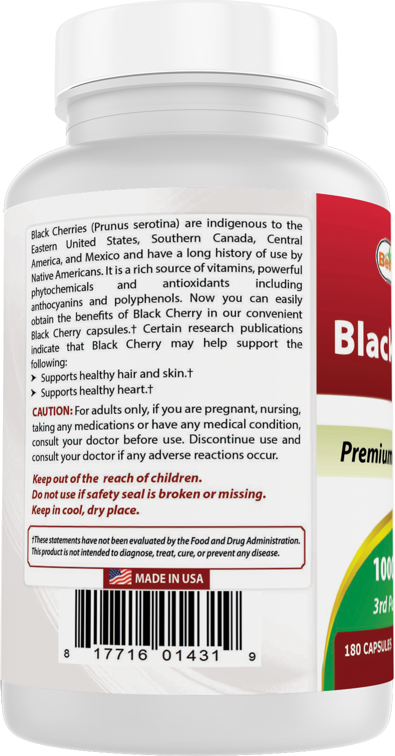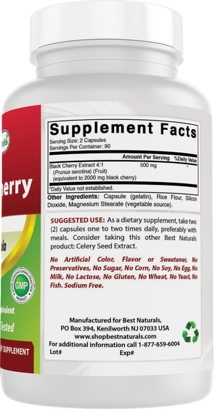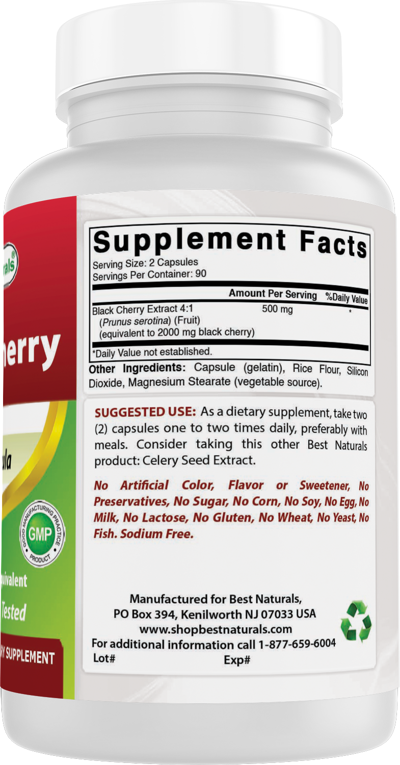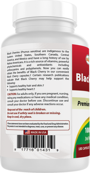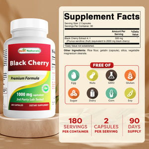 • 1000 mg of Black Cherry per Serving - 180 Capsules per Bottle.