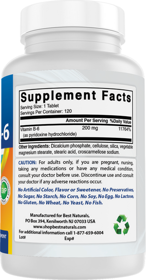 {"id":6888606728353,"title":"Best Naturals Vitamin B6 200mg for Adults, 120 Tablets","handle":"best-naturals-vitamin-b6-200mg-for-adults-120-tablets","description":"\u003cul data-mce-fragment=\"1\" class=\"a-unordered-list a-vertical a-spacing-mini\"\u003e\n\u003cli style=\"font-weight: 400;\"\u003e\u003cspan style=\"font-weight: 400;\"\u003e3rd Party Lab Tested for Purity \u0026amp; Quality.\u003c\/span\u003e\u003c\/li\u003e\n\u003cli style=\"font-weight: 400;\"\u003e\n\u003cspan style=\"font-weight: 400;\"\u003e200 mg of \u003c\/span\u003e\u003cspan style=\"font-weight: 400;\"\u003eVitamin B-6 \u003c\/span\u003e\u003cspan style=\"font-weight: 400;\"\u003eper Tablet - 120 Tablets per Bottle.\u003c\/span\u003e\n\u003c\/li\u003e\n\u003cli style=\"font-weight: 400;\"\u003e\u003cspan style=\"font-weight: 400;\"\u003eNon-GMO \u0026amp; Gluten-Free.\u003c\/span\u003e\u003c\/li\u003e\n\u003cli style=\"font-weight: 400;\"\u003e\u003cspan style=\"font-weight: 400;\"\u003eProudly Made in USA, GMP Compliant, FDA Registered Facility.\u003c\/span\u003e\u003c\/li\u003e\n\u003cli style=\"font-weight: 400;\"\u003e\u003cspan style=\"font-weight: 400;\"\u003eNo Artificial Color, Flavor, or Sweetener, No Preservatives, No Sugar, No Milk, No Corn, No Soy, No Egg, No Lactose, No Gluten, No Wheat, No Yeast, No Fish. Sodium Free.\u003c\/span\u003e\u003c\/li\u003e\n\u003c\/ul\u003e","published_at":"2021-07-28T10:20:52-04:00","created_at":"2021-07-28T10:20:51-04:00","vendor":"shopbestnaturals.com","type":"","tags":["Supplements"],"price":999,"price_min":999,"price_max":999,"available":true,"price_varies":false,"compare_at_price":2499,"compare_at_price_min":2499,"compare_at_price_max":2499,"compare_at_price_varies":false,"variants":[{"id":40466516148385,"title":"Default Title","option1":"Default Title","option2":null,"option3":null,"sku":"817716018300","requires_shipping":true,"taxable":false,"featured_image":null,"available":true,"name":"Best Naturals Vitamin B6 200mg for Adults, 120 Tablets","public_title":null,"options":["Default Title"],"price":999,"weight":91,"compare_at_price":2499,"inventory_management":"shopify","barcode":"817716018300","requires_selling_plan":false,"selling_plan_allocations":[]}],"images":["\/\/shopbestnaturals-com.myshopify.com\/cdn\/shop\/products\/Image-1_ced9e6c0-03ae-45b9-9a2f-db25c7c077a9.jpg?v=1749677516","\/\/shopbestnaturals-com.myshopify.com\/cdn\/shop\/files\/Image-4_f68527c0-3c12-4e28-ae69-fbecd4e786ea.jpg?v=1756477996","\/\/shopbestnaturals-com.myshopify.com\/cdn\/shop\/files\/Image-5_555d14bc-009e-4574-afda-0d256521d8ac.jpg?v=1756477996","\/\/shopbestnaturals-com.myshopify.com\/cdn\/shop\/files\/Image-6_04478dcd-4710-4233-97e2-5ef43a2d3023.jpg?v=1756477996","\/\/shopbestnaturals-com.myshopify.com\/cdn\/shop\/files\/Image-7_6d6d3091-077a-456a-beb0-741e2b81b3d2.jpg?v=1756477996","\/\/shopbestnaturals-com.myshopify.com\/cdn\/shop\/files\/Image-2_e8873289-3e75-405d-a014-3c8e96b01dce.png?v=1756477996","\/\/shopbestnaturals-com.myshopify.com\/cdn\/shop\/files\/Image-3_f1d12229-7085-4d3a-a267-b9888aadda9f.png?v=1756477996"],"featured_image":"\/\/shopbestnaturals-com.myshopify.com\/cdn\/shop\/products\/Image-1_ced9e6c0-03ae-45b9-9a2f-db25c7c077a9.jpg?v=1749677516","options":["Title"],"media":[{"alt":"Best Naturals Vitamin b6 200mg for Adults, 120 Tablets - shopbestnaturals.com","id":22836338819233,"position":1,"preview_image":{"aspect_ratio":0.525,"height":2574,"width":1351,"src":"\/\/shopbestnaturals-com.myshopify.com\/cdn\/shop\/products\/Image-1_ced9e6c0-03ae-45b9-9a2f-db25c7c077a9.jpg?v=1749677516"},"aspect_ratio":0.525,"height":2574,"media_type":"image","src":"\/\/shopbestnaturals-com.myshopify.com\/cdn\/shop\/products\/Image-1_ced9e6c0-03ae-45b9-9a2f-db25c7c077a9.jpg?v=1749677516","width":1351},{"alt":null,"id":37677499908313,"position":2,"preview_image":{"aspect_ratio":1.0,"height":1500,"width":1500,"src":"\/\/shopbestnaturals-com.myshopify.com\/cdn\/shop\/files\/Image-4_f68527c0-3c12-4e28-ae69-fbecd4e786ea.jpg?v=1756477996"},"aspect_ratio":1.0,"height":1500,"media_type":"image","src":"\/\/shopbestnaturals-com.myshopify.com\/cdn\/shop\/files\/Image-4_f68527c0-3c12-4e28-ae69-fbecd4e786ea.jpg?v=1756477996","width":1500},{"alt":null,"id":37677499941081,"position":3,"preview_image":{"aspect_ratio":1.0,"height":1500,"width":1500,"src":"\/\/shopbestnaturals-com.myshopify.com\/cdn\/shop\/files\/Image-5_555d14bc-009e-4574-afda-0d256521d8ac.jpg?v=1756477996"},"aspect_ratio":1.0,"height":1500,"media_type":"image","src":"\/\/shopbestnaturals-com.myshopify.com\/cdn\/shop\/files\/Image-5_555d14bc-009e-4574-afda-0d256521d8ac.jpg?v=1756477996","width":1500},{"alt":null,"id":37677499973849,"position":4,"preview_image":{"aspect_ratio":1.0,"height":1500,"width":1500,"src":"\/\/shopbestnaturals-com.myshopify.com\/cdn\/shop\/files\/Image-6_04478dcd-4710-4233-97e2-5ef43a2d3023.jpg?v=1756477996"},"aspect_ratio":1.0,"height":1500,"media_type":"image","src":"\/\/shopbestnaturals-com.myshopify.com\/cdn\/shop\/files\/Image-6_04478dcd-4710-4233-97e2-5ef43a2d3023.jpg?v=1756477996","width":1500},{"alt":null,"id":37677500006617,"position":5,"preview_image":{"aspect_ratio":1.0,"height":1500,"width":1500,"src":"\/\/shopbestnaturals-com.myshopify.com\/cdn\/shop\/files\/Image-7_6d6d3091-077a-456a-beb0-741e2b81b3d2.jpg?v=1756477996"},"aspect_ratio":1.0,"height":1500,"media_type":"image","src":"\/\/shopbestnaturals-com.myshopify.com\/cdn\/shop\/files\/Image-7_6d6d3091-077a-456a-beb0-741e2b81b3d2.jpg?v=1756477996","width":1500},{"alt":null,"id":37677500039385,"position":6,"preview_image":{"aspect_ratio":0.523,"height":1500,"width":785,"src":"\/\/shopbestnaturals-com.myshopify.com\/cdn\/shop\/files\/Image-2_e8873289-3e75-405d-a014-3c8e96b01dce.png?v=1756477996"},"aspect_ratio":0.523,"height":1500,"media_type":"image","src":"\/\/shopbestnaturals-com.myshopify.com\/cdn\/shop\/files\/Image-2_e8873289-3e75-405d-a014-3c8e96b01dce.png?v=1756477996","width":785},{"alt":null,"id":37677500072153,"position":7,"preview_im