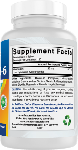 {"id":6888611905697,"title":"Best Naturals Vitamin B6 25mg 120 Tablets","handle":"best-naturals-vitamin-b6-25mg-120-tablets","description":"\u003cul data-mce-fragment=\"1\" class=\"a-unordered-list a-vertical a-spacing-mini\"\u003e\n\u003cli\u003e\u003cspan\u003e3rd Party Lab Tested for Purity \u0026amp; Quality.\u003c\/span\u003e\u003c\/li\u003e\n\u003cli\u003e\n\u003cspan\u003e25 mg of\u003cspan\u003e \u003c\/span\u003e\u003c\/span\u003e\u003cspan\u003eVitamin B-6\u003cspan\u003e \u003c\/span\u003e\u003c\/span\u003e\u003cspan\u003eper Tablet - 120 Tablets per Bottle.\u003c\/span\u003e\n\u003c\/li\u003e\n\u003cli\u003e\u003cspan\u003eNon-GMO \u0026amp; Gluten-Free.\u003c\/span\u003e\u003c\/li\u003e\n\u003cli\u003e\u003cspan\u003eProudly Made in the USA, GMP Compliant, FDA Registered Facility.\u003c\/span\u003e\u003c\/li\u003e\n\u003cli\u003e\u003cspan\u003eNo Artificial Color, Flavor, or Sweetener, No Preservatives, No Sugar, No Milk, No Corn, No Soy, No Egg, No Lactose, No Gluten, No Wheat, No Yeast, No Fish. Sodium Free.\u003c\/span\u003e\u003c\/li\u003e\n\u003c\/ul\u003e","published_at":"2021-07-28T10:23:37-04:00","created_at":"2021-07-28T10:23:36-04:00","vendor":"shopbestnaturals.com","type":"","tags":["Supplements"],"price":599,"price_min":599,"price_max":599,"available":true,"price_varies":false,"compare_at_price":1299,"compare_at_price_min":1299,"compare_at_price_max":1299,"compare_at_price_varies":false,"variants":[{"id":40466533712033,"title":"Default Title","option1":"Default Title","option2":null,"option3":null,"sku":"817716015736","requires_shipping":true,"taxable":false,"featured_image":null,"available":true,"name":"Best Naturals Vitamin B6 25mg 120 Tablets","public_title":null,"options":["Default Title"],"price":599,"weight":54,"compare_at_price":1299,"inventory_management":"shopify","barcode":"817716015736","requires_selling_plan":false,"selling_plan_allocations":[]}],"images":["\/\/shopbestnaturals-com.myshopify.com\/cdn\/shop\/products\/Image-1_0a6d7133-04c0-4fdf-8835-4a7ce09a0640.jpg?v=1749677526","\/\/shopbestnaturals-com.myshopify.com\/cdn\/shop\/files\/Image-4_ca5be699-7b3a-47bc-aa7d-bce7843e17b9.jpg?v=1756477901","\/\/shopbestnaturals-com.myshopify.com\/cdn\/shop\/files\/Image-5_545238de-44eb-4ac8-bd58-6963e3394d81.jpg?v=1756477901","\/\/shopbestnaturals-com.myshopify.com\/cdn\/shop\/files\/Image-6_ca35a457-7d41-4c5a-8277-2d74710e7b04.jpg?v=1756477901","\/\/shopbestnaturals-com.myshopify.com\/cdn\/shop\/files\/Image-7_47519187-f878-490c-9ad8-2da437db5f9a.jpg?v=1756477901","\/\/shopbestnaturals-com.myshopify.com\/cdn\/shop\/files\/Image-2_cf69139a-8333-41d8-944d-b7c756d9f58e.png?v=1756477901","\/\/shopbestnaturals-com.myshopify.com\/cdn\/shop\/files\/Image-3_e6fb6865-00e1-4ca4-89b4-1e3c1cdd164c.png?v=1756477901"],"featured_image":"\/\/shopbestnaturals-com.myshopify.com\/cdn\/shop\/products\/Image-1_0a6d7133-04c0-4fdf-8835-4a7ce09a0640.jpg?v=1749677526","options":["Title"],"media":[{"alt":"Best Naturals Vitamin B6 25mg, 120 Tablets - shopbestnaturals.com","id":22836369686689,"position":1,"preview_image":{"aspect_ratio":0.525,"height":2574,"width":1351,"src":"\/\/shopbestnaturals-com.myshopify.com\/cdn\/shop\/products\/Image-1_0a6d7133-04c0-4fdf-8835-4a7ce09a0640.jpg?v=1749677526"},"aspect_ratio":0.525,"height":2574,"media_type":"image","src":"\/\/shopbestnaturals-com.myshopify.com\/cdn\/shop\/products\/Image-1_0a6d7133-04c0-4fdf-8835-4a7ce09a0640.jpg?v=1749677526","width":1351},{"alt":null,"id":37677499154649,"position":2,"preview_image":{"aspect_ratio":1.0,"height":1500,"width":1500,"src":"\/\/shopbestnaturals-com.myshopify.com\/cdn\/shop\/files\/Image-4_ca5be699-7b3a-47bc-aa7d-bce7843e17b9.jpg?v=1756477901"},"aspect_ratio":1.0,"height":1500,"media_type":"image","src":"\/\/shopbestnaturals-com.myshopify.com\/cdn\/shop\/files\/Image-4_ca5be699-7b3a-47bc-aa7d-bce7843e17b9.jpg?v=1756477901","width":1500},{"alt":null,"id":37677499187417,"position":3,"preview_image":{"aspect_ratio":1.0,"height":1500,"width":1500,"src":"\/\/shopbestnaturals-com.myshopify.com\/cdn\/shop\/files\/Image-5_545238de-44eb-4ac8-bd58-6963e3394d81.jpg?v=1756477901"},"aspect_ratio":1.0,"height":1500,"media_type":"image","src":"\/\/shopbestnaturals-com.myshopify.com\/cdn\/shop\/files\/Image-5_545238de-44eb-4ac8-bd58-6963e3394d81.jpg?v=1756477901","width":1500},{"alt":null,"id":37677499220185,"position":4,"preview_image":{"aspect_ratio":1.0,"height":1500,"width":1500,"src":"\/\/shopbestnaturals-com.myshopify.com\/cdn\/shop\/files\/Image-6_ca35a457-7d41-4c5a-8277-2d74710e7b04.jpg?v=1756477901"},"aspect_ratio":1.0,"height":1500,"media_type":"image","src":"\/\/shopbestnaturals-com.myshopify.com\/cdn\/shop\/files\/Image-6_ca35a457-7d41-4c5a-8277-2d74710e7b04.jpg?v=1756477901","width":1500},{"alt":null,"id":37677499252953,"position":5,"preview_image":{"aspect_ratio":1.0,"height":1500,"width":1500,"src":"\/\/shopbestnaturals-com.myshopify.com\/cdn\/shop\/files\/Image-7_47519187-f878-490c-9ad8-2da437db5f9a.jpg?v=1756477901"},"aspect_ratio":1.0,"height":1500,"media_type":"image","src":"\/\/shopbestnaturals-com.myshopify.com\/cdn\/shop\/files\/Image-7_47519187-f878-490c-9ad8-2da437db5f9a.jpg?v=1756477901","width":1500},{"alt":null,"id":37677499285721,"position":6,"preview_image":{"aspect_ratio":0.523,"height":1500,"width":785,"src":"\/\/shopbestnaturals-com.myshopify.com\/cdn\/shop\/files\/Image-2_cf69139a-8333-41d8-944d-b7c756d9f58e.png?v=1756477901"},"aspect_ratio":0.523,"height":1500,"media_type":"image","src":"\/\/shopbestnaturals-com.myshopify.com\/cdn\/shop\/files\/Image-2_cf69139a-8333-41d8-944d-b7c756d9f58e.png?v=1756477901","width":785},{"alt":null,"id":37677499318489,"position":7,"preview_image":{"aspect_ratio":0.523,"height":1500,"width":785,"src":"\/\/shopbestnaturals-com.myshopify.com\/cdn\/shop\/files\/Image-3_e6fb6865-00e1-4ca4-89b4-1e3c1cdd164c.png?v=1756477901"},"aspect_ratio":0.523,"height":1500,"media_type":"image","src":"\/\/shopbestnaturals-com.myshopify.com\/cdn\/shop\/files\/Image-3_e6fb