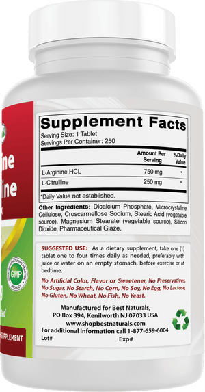 {"id":4533782544521,"title":"Best Naturals L-Arginine L-Citrulline Complex 1000 mg 250 Tablets","handle":"best-naturals-l-arginine-l","description":"\u003cul data-mce-fragment=\"1\"\u003e\n\u003cli style=\"font-weight: 400;\" data-mce-fragment=\"1\" data-mce-style=\"font-weight: 400;\"\u003e\u003cspan style=\"font-weight: 400;\" data-mce-fragment=\"1\" data-mce-style=\"font-weight: 400;\"\u003e3rd Party Lab Tested for Purity \u0026amp; Quality.\u003c\/span\u003e\u003c\/li\u003e\n\u003cli style=\"font-weight: 400;\" data-mce-fragment=\"1\" data-mce-style=\"font-weight: 400;\"\u003e\u003cspan style=\"font-weight: 400;\" data-mce-fragment=\"1\" data-mce-style=\"font-weight: 400;\"\u003e1000 mg of L-Arginine L-Citrulline Complex per Tablet - 250 Tablets per Bottle.\u003c\/span\u003e\u003c\/li\u003e\n\u003cli style=\"font-weight: 400;\" data-mce-fragment=\"1\" data-mce-style=\"font-weight: 400;\"\u003e\u003cspan style=\"font-weight: 400;\" data-mce-fragment=\"1\" data-mce-style=\"font-weight: 400;\"\u003eNon-GMO \u0026amp; Gluten-Free.\u003c\/span\u003e\u003c\/li\u003e\n\u003cli style=\"font-weight: 400;\" data-mce-fragment=\"1\" data-mce-style=\"font-weight: 400;\"\u003e\u003cspan style=\"font-weight: 400;\" data-mce-fragment=\"1\" data-mce-style=\"font-weight: 400;\"\u003eProudly Made in USA, GMP Compliant, FDA Registered Facility.\u003c\/span\u003e\u003c\/li\u003e\n\u003cli style=\"font-weight: 400;\" data-mce-fragment=\"1\" data-mce-style=\"font-weight: 400;\"\u003e\u003cspan style=\"font-weight: 400;\" data-mce-fragment=\"1\" data-mce-style=\"font-weight: 400;\"\u003eNo Artificial Color, Flavor, or Sweetener, No Preservatives, No Sugar, No Milk, No Corn, No Soy, No Egg, No Lactose, No Gluten, No Wheat, No Yeast, No Fish. Sodium Free.\u003c\/span\u003e\u003c\/li\u003e\n\u003c\/ul\u003e","published_at":"2020-02-05T07:42:43-05:00","created_at":"2020-02-05T08:33:18-05:00","vendor":"shopbestnaturals.com","type":"","tags":["Supplements"],"price":1899,"price_min":1899,"price_max":1899,"available":true,"price_varies":false,"compare_at_price":4999,"compare_at_price_min":4999,"compare_at_price_max":4999,"compare_at_price_varies":false,"variants":[{"id":32114170822793,"title":"Default Title","option1":"Default Title","option2":null,"option3":null,"sku":"817716011523","requires_shipping":true,"taxable":false,"featured_image":null,"available":true,"name":"Best Naturals L-Arginine L-Citrulline Complex 1000 mg 250 Tablets","public_title":null,"options":["Default Title"],"price":1899,"weight":417,"compare_at_price":4999,"inventory_management":"shopify","barcode":"817716011523","requires_selling_plan":false,"selling_plan_allocations":[]}],"images":["\/\/shopbestnaturals-com.myshopify.com\/cdn\/shop\/files\/Image-1_ebc8ae3c-0acd-4f38-90cc-9445635f60fb.png?v=1749675956","\/\/shopbestnaturals-com.myshopify.com\/cdn\/shop\/files\/Image-4_1642a3a5-d32d-4e71-9f6d-3c6b4d5c8fa0.jpg?v=1749675958","\/\/shopbestnaturals-com.myshopify.com\/cdn\/shop\/files\/Image-5_b721766c-7f91-4f2c-b921-80103edd85b1.jpg?v=1749675960","\/\/shopbestnaturals-com.myshopify.com\/cdn\/shop\/files\/Image-6_6d32376d-9544-4fcb-be1c-1ff286c89ff5.jpg?v=1749675962","\/\/shopbestnaturals-com.myshopify.com\/cdn\/shop\/files\/Image-7_88bdb700-305f-47b5-a947-60a980658b26.jpg?v=1756226280","\/\/shopbestnaturals-com.myshopify.com\/cdn\/shop\/files\/Image-2_6605ed11-86a2-4d94-8e6a-c7d91046dfde.png?v=1756226280","\/\/shopbestnaturals-com.myshopify.com\/cdn\/shop\/files\/Image-3_b29adbc1-0c16-43af-962b-fdd37b795eb5.png?v=1756226280"],"featured_image":"\/\/shopbestnaturals-com.myshopify.com\/cdn\/shop\/files\/Image-1_ebc8ae3c-0acd-4f38-90cc-9445635f60fb.png?v=1749675956","options":["Title"],"media":[{"alt":null,"id":35342278557913,"position":1,"preview_image":{"aspect_ratio":0.523,"height":1500,"width":785,"src":"\/\/shopbestnaturals-com.myshopify.com\/cdn\/shop\/files\/Image-1_ebc8ae3c-0acd-4f38-90cc-9445635f60fb.png?v=1749675956"},"aspect_ratio":0.523,"height":1500,"media_type":"image","src":"\/\/shopbestnaturals-com.myshopify.com\/cdn\/shop\/files\/Image-1_ebc8ae3c-0acd-4f38-90cc-9445635f60fb.png?v=1749675956","width":785},{"alt":null,"id":35342278656217,"position":2,"preview_image":{"aspect_ratio":1.0,"height":1500,"width":1500,"src":"\/\/shopbestnaturals-com.myshopify.com\/cdn\/shop\/files\/Image-4_1642a3a5-d32d-4e71-9f6d-3c6b4d5c8fa0.jpg?v=1749675958"},"aspect_ratio":1.0,"height":1500,"media_type":"image","src":"\/\/shopbestnaturals-com.myshopify.com\/cdn\/shop\/files\/Image-4_1642a3a5-d32d-4e71-9f6d-3c6b4d5c8fa0.jpg?v=1749675958","width":1500},{"alt":null,"id":35342278688985,"position":3,"preview_image":{"aspect_ratio":1.0,"height":1500,"width":1500,"src":"\/\/shopbestnaturals-com.myshopify.com\/cdn\/shop\/files\/Image-5_b721766c-7f91-4f2c-b921-80103edd85b1.jpg?v=1749675960"},"aspect_ratio":1.0,"height":1500,"media_type":"image","src":"\/\/shopbestnaturals-com.myshopify.com\/cdn\/shop\/files\/Image-5_b721766c-7f91-4f2c-b921-80103edd85b1.jpg?v=1749675960","width":1500},{"alt":null,"id":35342278721753,"position":4,"preview_image":{"aspect_ratio":1.0,"height":1500,"width":1500,"src":"\/\/shopbestnaturals-com.myshopify.com\/cdn\/shop\/files\/Image-6_6d32376d-9544-4fcb-be1c-1ff286c89ff5.jpg?v=1749675962"},"aspect_ratio":1.0,"height":1500,"media_type":"image","src":"\/\/shopbestnaturals-com.myshopify.com\/cdn\/shop\/files\/Image-6_6d32376d-9544-4fcb-be1c-1ff286c89ff5.jpg?v=1749675962","width":1500},{"alt":null,"id":37658383581401,"position":5,"preview_image":{"aspect_ratio":1.0,"height":1500,"width":1500,"src":"\/\/shopbestnaturals-com.myshopify.com\/cdn\/shop\/files\/Image-7_88bdb700-305f-47b5-a947-60a980658b26.jpg?v=1756226280"},"aspect_ratio":1.0,"height":1500,"media_type":"image","src":"\/\/shopbestnaturals-com.myshopify.com\/cdn\/shop\/files\/Image-7_88bdb700-305f-47b5-a947-60a980658b26.jpg?v=1756226280","width":1500},{"alt":null,"id":35342278590681,"position":6,"preview_image":{"aspect_ratio":0.523,"height":1500,"width":785,"src":"\/\/shopbestna