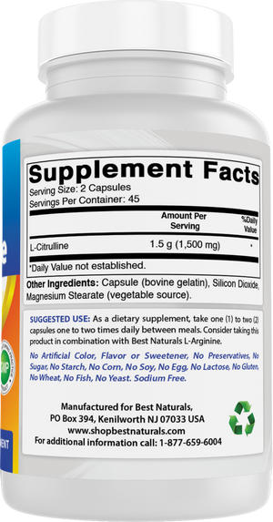 {"id":4644509810825,"title":"Best Naturals L-Citrulline 1500mg\/Serving 90 Capsules","handle":"best-naturals-l-citrulline-1500mg-serving-90-capsules","description":"\u003cul data-mce-fragment=\"1\"\u003e\n\u003cli style=\"font-weight: 400;\" data-mce-fragment=\"1\" data-mce-style=\"font-weight: 400;\"\u003e\u003cspan style=\"font-weight: 400;\" data-mce-fragment=\"1\" data-mce-style=\"font-weight: 400;\"\u003e3rd Party Lab Tested for Purity \u0026amp; Quality.\u003c\/span\u003e\u003c\/li\u003e\n\u003cli style=\"font-weight: 400;\" data-mce-fragment=\"1\" data-mce-style=\"font-weight: 400;\"\u003e\u003cspan style=\"font-weight: 400;\" data-mce-fragment=\"1\" data-mce-style=\"font-weight: 400;\"\u003e1500 mg of L-Citrulline per Capsule - 90 Capsules per Bottle.\u003c\/span\u003e\u003c\/li\u003e\n\u003cli style=\"font-weight: 400;\" data-mce-fragment=\"1\" data-mce-style=\"font-weight: 400;\"\u003e\u003cspan style=\"font-weight: 400;\" data-mce-fragment=\"1\" data-mce-style=\"font-weight: 400;\"\u003eNon-GMO \u0026amp; Gluten-Free.\u003c\/span\u003e\u003c\/li\u003e\n\u003cli style=\"font-weight: 400;\" data-mce-fragment=\"1\" data-mce-style=\"font-weight: 400;\"\u003e\u003cspan style=\"font-weight: 400;\" data-mce-fragment=\"1\" data-mce-style=\"font-weight: 400;\"\u003eProudly Made in USA, GMP Compliant, FDA Registered Facility.\u003c\/span\u003e\u003c\/li\u003e\n\u003cli style=\"font-weight: 400;\" data-mce-fragment=\"1\" data-mce-style=\"font-weight: 400;\"\u003e\u003cspan style=\"font-weight: 400;\" data-mce-fragment=\"1\" data-mce-style=\"font-weight: 400;\"\u003eNo Artificial Color, Flavor, or Sweetener, No Preservatives, No Sugar, No Milk, No Corn, No Soy, No Egg, No Lactose, No Gluten, No Wheat, No Yeast, No Fish. Sodium Free.\u003c\/span\u003e\u003c\/li\u003e\n\u003c\/ul\u003e","published_at":"2020-03-07T07:17:11-05:00","created_at":"2020-03-07T08:12:20-05:00","vendor":"shopbestnaturals.com","type":"","tags":["Supplements"],"price":1299,"price_min":1299,"price_max":1299,"available":true,"price_varies":false,"compare_at_price":2499,"compare_at_price_min":2499,"compare_at_price_max":2499,"compare_at_price_varies":false,"variants":[{"id":32634115915913,"title":"Default Title","option1":"Default Title","option2":null,"option3":null,"sku":"817716015866","requires_shipping":true,"taxable":false,"featured_image":null,"available":true,"name":"Best Naturals L-Citrulline 1500mg\/Serving 90 Capsules","public_title":null,"options":["Default Title"],"price":1299,"weight":100,"compare_at_price":2499,"inventory_management":"shopify","barcode":"817716015866","requires_selling_plan":false,"selling_plan_allocations":[]}],"images":["\/\/shopbestnaturals-com.myshopify.com\/cdn\/shop\/products\/Image-1_4350c061-3b9f-4644-8e9b-af43755c0d0f.jpg?v=1749676081","\/\/shopbestnaturals-com.myshopify.com\/cdn\/shop\/files\/Image-4_5e622f7d-d055-470e-8b75-671b5250cba8.jpg?v=1757443884","\/\/shopbestnaturals-com.myshopify.com\/cdn\/shop\/files\/Image-5_c7751e1b-0ecc-4b42-be99-3fb804bde2dd.jpg?v=1757443884","\/\/shopbestnaturals-com.myshopify.com\/cdn\/shop\/files\/Image-6_979ec798-0d09-4453-a1ae-e60ac40a8681.jpg?v=1757443884","\/\/shopbestnaturals-com.myshopify.com\/cdn\/shop\/files\/Image-7_811260d0-09cb-4f71-85dd-2bef07c99eb5.jpg?v=1757443884","\/\/shopbestnaturals-com.myshopify.com\/cdn\/shop\/files\/Image-2_ddc77c3d-84b8-48e1-956c-d80422339f5f.png?v=1757443884","\/\/shopbestnaturals-com.myshopify.com\/cdn\/shop\/files\/Image-3_591f39e5-3bf4-4b4f-ac72-99842dcf9302.png?v=1757443884"],"featured_image":"\/\/shopbestnaturals-com.myshopify.com\/cdn\/shop\/products\/Image-1_4350c061-3b9f-4644-8e9b-af43755c0d0f.jpg?v=1749676081","options":["Title"],"media":[{"alt":"Best Naturals L-Citrulline 1500mg\/Serving 90 Capsules - shopbestnaturals.com","id":12135273922721,"position":1,"preview_image":{"aspect_ratio":0.525,"height":2574,"width":1351,"src":"\/\/shopbestnaturals-com.myshopify.com\/cdn\/shop\/products\/Image-1_4350c061-3b9f-4644-8e9b-af43755c0d0f.jpg?v=1749676081"},"aspect_ratio":0.525,"height":2574,"media_type":"image","src":"\/\/shopbestnaturals-com.myshopify.com\/cdn\/shop\/products\/Image-1_4350c061-3b9f-4644-8e9b-af43755c0d0f.jpg?v=1749676081","width":1351},{"alt":null,"id":37717727772889,"position":2,"preview_image":{"aspect_ratio":1.0,"height":1500,"width":1500,"src":"\/\/shopbestnaturals-com.myshopify.com\/cdn\/shop\/files\/Image-4_5e622f7d-d055-470e-8b75-671b5250cba8.jpg?v=1757443884"},"aspect_ratio":1.0,"height":1500,"media_type":"image","src":"\/\/shopbestnaturals-com.myshopify.com\/cdn\/shop\/files\/Image-4_5e622f7d-d055-470e-8b75-671b5250cba8.jpg?v=1757443884","width":1500},{"alt":null,"id":37717727805657,"position":3,"preview_image":{"aspect_ratio":1.0,"height":1500,"width":1500,"src":"\/\/shopbestnaturals-com.myshopify.com\/cdn\/shop\/files\/Image-5_c7751e1b-0ecc-4b42-be99-3fb804bde2dd.jpg?v=1757443884"},"aspect_ratio":1.0,"height":1500,"media_type":"image","src":"\/\/shopbestnaturals-com.myshopify.com\/cdn\/shop\/files\/Image-5_c7751e1b-0ecc-4b42-be99-3fb804bde2dd.jpg?v=1757443884","width":1500},{"alt":null,"id":37717727838425,"position":4,"preview_image":{"aspect_ratio":1.0,"height":1500,"width":1500,"src":"\/\/shopbestnaturals-com.myshopify.com\/cdn\/shop\/files\/Image-6_979ec798-0d09-4453-a1ae-e60ac40a8681.jpg?v=1757443884"},"aspect_ratio":1.0,"height":1500,"media_type":"image","src":"\/\/shopbestnaturals-com.myshopify.com\/cdn\/shop\/files\/Image-6_979ec798-0d09-4453-a1ae-e60ac40a8681.jpg?v=1757443884","width":1500},{"alt":null,"id":37717727871193,"position":5,"preview_image":{"aspect_ratio":1.0,"height":1500,"width":1500,"src":"\/\/shopbestnaturals-com.myshopify.com\/cdn\/shop\/files\/Image-7_811260d0-09cb-4f71-85dd-2bef07c99eb5.jpg?v=1757443884"},"aspect_ratio":1.0,"height":1500,"media_type":"image","src":"\/\/shopbestnaturals-com.myshopify.com\/cdn\/shop\/files\/Image-7_811260d0-09cb-4f71-85dd-2bef07c99eb5.jpg?v=1757443884","width":1500},{"alt":null,"id":37717727903961,"position":6,"preview_