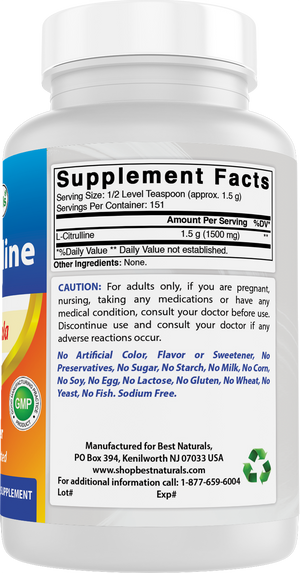 {"id":4542556962953,"title":"Best Naturals L-Citrulline 8 Oz Powder","handle":"best-naturals-l-citrulline-powder-8-oz","description":"\u003cul data-mce-fragment=\"1\"\u003e\n\u003cli style=\"font-weight: 400;\" data-mce-fragment=\"1\"\u003e\u003cspan style=\"font-weight: 400;\" data-mce-fragment=\"1\"\u003e3rd Party Lab Tested for Purity \u0026amp; Quality.\u003c\/span\u003e\u003c\/li\u003e\n\u003cli style=\"font-weight: 400;\" data-mce-fragment=\"1\"\u003e\n\u003cspan style=\"font-weight: 400;\" data-mce-fragment=\"1\"\u003e½ Level Teaspoon\u003c\/span\u003e\u003cspan style=\"font-weight: 400;\" data-mce-fragment=\"1\"\u003e (1.5 g) of L-Citrulline per Serving, 151 Servings per bottle\u003c\/span\u003e\u003cspan style=\"font-weight: 400;\" data-mce-fragment=\"1\"\u003e.\u003c\/span\u003e\n\u003c\/li\u003e\n\u003cli style=\"font-weight: 400;\" data-mce-fragment=\"1\"\u003e\u003cspan style=\"font-weight: 400;\" data-mce-fragment=\"1\"\u003eNon-GMO \u0026amp; Gluten-Free.\u003c\/span\u003e\u003c\/li\u003e\n\u003cli style=\"font-weight: 400;\" data-mce-fragment=\"1\"\u003e\u003cspan style=\"font-weight: 400;\" data-mce-fragment=\"1\"\u003eProudly Made in USA, GMP Compliant, FDA Registered Facility.\u003c\/span\u003e\u003c\/li\u003e\n\u003cli style=\"font-weight: 400;\" data-mce-fragment=\"1\"\u003e\u003cspan style=\"font-weight: 400;\" data-mce-fragment=\"1\"\u003eNo Artificial Color, Flavor, or Sweetener, No Preservatives, No Sugar, No Milk, No Corn, No Soy, No Egg, No Lactose, No Gluten, No Wheat, No Yeast, No Fish. Sodium Free.\u003c\/span\u003e\u003c\/li\u003e\n\u003c\/ul\u003e","published_at":"2020-02-08T09:01:17-05:00","created_at":"2020-02-08T09:04:41-05:00","vendor":"shopbestnaturals.com","type":"","tags":["Supplements"],"price":1499,"price_min":1499,"price_max":1499,"available":true,"price_varies":false,"compare_at_price":3499,"compare_at_price_min":3499,"compare_at_price_max":3499,"compare_at_price_varies":false,"variants":[{"id":32158733107337,"title":"Default Title","option1":"Default Title","option2":null,"option3":null,"sku":"817716015958","requires_shipping":true,"taxable":false,"featured_image":null,"available":true,"name":"Best Naturals L-Citrulline 8 Oz Powder","public_title":null,"options":["Default Title"],"price":1499,"weight":272,"compare_at_price":3499,"inventory_management":"shopify","barcode":"817716015958","requires_selling_plan":false,"selling_plan_allocations":[]}],"images":["\/\/shopbestnaturals-com.myshopify.com\/cdn\/shop\/products\/Image-1_267fde27-def1-4d59-8962-437a79197308.jpg?v=1749675980","\/\/shopbestnaturals-com.myshopify.com\/cdn\/shop\/files\/Image-4_72bbbbf8-f5cf-4993-98d8-a417b0d9b4b9.jpg?v=1756141699","\/\/shopbestnaturals-com.myshopify.com\/cdn\/shop\/files\/Image-5_12aedca7-3f23-4777-aa4b-f86d1ae3b7ba.jpg?v=1756141699","\/\/shopbestnaturals-com.myshopify.com\/cdn\/shop\/files\/Image-6_925b096c-7d17-4780-84b7-f349444c89ec.jpg?v=1756141699","\/\/shopbestnaturals-com.myshopify.com\/cdn\/shop\/files\/Image-7_0fe8fb40-00d6-4ccc-8416-c81185d25c5b.jpg?v=1756141700","\/\/shopbestnaturals-com.myshopify.com\/cdn\/shop\/files\/Image-2_1da1c2e7-b76c-46f7-893c-b2e1362fef52.png?v=1756141699","\/\/shopbestnaturals-com.myshopify.com\/cdn\/shop\/files\/Image-3_b2839ede-a127-4481-9a27-2f7c6e0bd279.png?v=1756141699"],"featured_image":"\/\/shopbestnaturals-com.myshopify.com\/cdn\/shop\/products\/Image-1_267fde27-def1-4d59-8962-437a79197308.jpg?v=1749675980","options":["Title"],"media":[{"alt":"Best Naturals L-Citrulline Powder 8 OZ - shopbestnaturals.com","id":12135266123937,"position":1,"preview_image":{"aspect_ratio":0.525,"height":2574,"width":1351,"src":"\/\/shopbestnaturals-com.myshopify.com\/cdn\/shop\/products\/Image-1_267fde27-def1-4d59-8962-437a79197308.jpg?v=1749675980"},"aspect_ratio":0.525,"height":2574,"media_type":"image","src":"\/\/shopbestnaturals-com.myshopify.com\/cdn\/shop\/products\/Image-1_267fde27-def1-4d59-8962-437a79197308.jpg?v=1749675980","width":1351},{"alt":null,"id":37655797563609,"position":2,"preview_image":{"aspect_ratio":1.0,"height":1500,"width":1500,"src":"\/\/shopbestnaturals-com.myshopify.com\/cdn\/shop\/files\/Image-4_72bbbbf8-f5cf-4993-98d8-a417b0d9b4b9.jpg?v=1756141699"},"aspect_ratio":1.0,"height":1500,"media_type":"image","src":"\/\/shopbestnaturals-com.myshopify.com\/cdn\/shop\/files\/Image-4_72bbbbf8-f5cf-4993-98d8-a417b0d9b4b9.jpg?v=1756141699","width":1500},{"alt":null,"id":37655797596377,"position":3,"preview_image":{"aspect_ratio":1.0,"height":1500,"width":1500,"src":"\/\/shopbestnaturals-com.myshopify.com\/cdn\/shop\/files\/Image-5_12aedca7-3f23-4777-aa4b-f86d1ae3b7ba.jpg?v=1756141699"},"aspect_ratio":1.0,"height":1500,"media_type":"image","src":"\/\/shopbestnaturals-com.myshopify.com\/cdn\/shop\/files\/Image-5_12aedca7-3f23-4777-aa4b-f86d1ae3b7ba.jpg?v=1756141699","width":1500},{"alt":null,"id":37655797629145,"position":4,"preview_image":{"aspect_ratio":1.0,"height":1500,"width":1500,"src":"\/\/shopbestnaturals-com.myshopify.com\/cdn\/shop\/files\/Image-6_925b096c-7d17-4780-84b7-f349444c89ec.jpg?v=1756141699"},"aspect_ratio":1.0,"height":1500,"media_type":"image","src":"\/\/shopbestnaturals-com.myshopify.com\/cdn\/shop\/files\/Image-6_925b096c-7d17-4780-84b7-f349444c89ec.jpg?v=1756141699","width":1500},{"alt":null,"id":37655797661913,"position":5,"preview_image":{"aspect_ratio":1.0,"height":1500,"width":1500,"src":"\/\/shopbestnaturals-com.myshopify.com\/cdn\/shop\/files\/Image-7_0fe8fb40-00d6-4ccc-8416-c81185d25c5b.jpg?v=1756141700"},"aspect_ratio":1.0,"height":1500,"media_type":"image","src":"\/\/shopbestnaturals-com.myshopify.com\/cdn\/shop\/files\/Image-7_0fe8fb40-00d6-4ccc-8416-c81185d25c5b.jpg?v=1756141700","width":1500},{"alt":null,"id":37655797727449,"position":6,"preview_image":{"aspect_ratio":0.523,"height":1500,"width":785,"src":"\/\/shopbestnaturals-com.myshopify.com\/cdn\/shop\/files\/Image-2_1da1c2e7-b76c-46f7-893c-b2e1362fef52.png?v=1756141699"},"aspect_ratio":0.523,"height":1500,"media_type":"image"