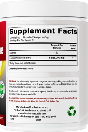 {"id":4644571054217,"title":"Best Naturals L-Glutamine 1 Lb Powder","handle":"best-naturals-l-glutamine-1-lb-powder","description":"\u003cul\u003e\n\u003cli style=\"font-weight: 400;\"\u003e\u003cspan style=\"font-weight: 400;\"\u003e3rd Party Lab Tested for Purity \u0026amp; Quality.\u003c\/span\u003e\u003c\/li\u003e\n\u003cli style=\"font-weight: 400;\"\u003e\n\u003cspan style=\"font-weight: 400;\"\u003e1 Rounded Teaspoon\u003c\/span\u003e\u003cspan style=\"font-weight: 400;\"\u003e (5 g) of L-Glutamine per Serving, 90 Servings per bottle\u003c\/span\u003e\u003cspan style=\"font-weight: 400;\"\u003e.\u003c\/span\u003e\n\u003c\/li\u003e\n\u003cli style=\"font-weight: 400;\"\u003e\u003cspan style=\"font-weight: 400;\"\u003eNon-GMO \u0026amp; Gluten-Free.\u003c\/span\u003e\u003c\/li\u003e\n\u003cli style=\"font-weight: 400;\"\u003e\u003cspan style=\"font-weight: 400;\"\u003eProudly Made in USA, GMP Compliant, FDA Registered Facility.\u003c\/span\u003e\u003c\/li\u003e\n\u003cli style=\"font-weight: 400;\"\u003e\u003cspan style=\"font-weight: 400;\"\u003eNo Artificial Color, Flavor, or Sweetener, No Preservatives, No Sugar, No Milk, No Corn, No Soy, No Egg, No Lactose, No Gluten, No Wheat, No Yeast, No Fish. Sodium Free.\u003c\/span\u003e\u003c\/li\u003e\n\u003c\/ul\u003e","published_at":"2020-03-07T07:17:11-05:00","created_at":"2020-03-07T08:44:51-05:00","vendor":"shopbestnaturals.com","type":"","tags":["Supplements"],"price":1699,"price_min":1699,"price_max":1699,"available":true,"price_varies":false,"compare_at_price":3999,"compare_at_price_min":3999,"compare_at_price_max":3999,"compare_at_price_varies":false,"variants":[{"id":32634395984009,"title":"Default Title","option1":"Default Title","option2":null,"option3":null,"sku":"817716014555","requires_shipping":true,"taxable":false,"featured_image":null,"available":true,"name":"Best Naturals L-Glutamine 1 Lb Powder","public_title":null,"options":["Default Title"],"price":1699,"weight":522,"compare_at_price":3999,"inventory_management":"shopify","barcode":"817716014555","requires_selling_plan":false,"selling_plan_allocations":[]}],"images":["\/\/shopbestnaturals-com.myshopify.com\/cdn\/shop\/files\/Image-1_f099a732-7b65-4df2-a576-69df9b178657.png?v=1756142346","\/\/shopbestnaturals-com.myshopify.com\/cdn\/shop\/files\/Image-4_22e3239e-8bab-49df-b469-e5f9da23ebe9.jpg?v=1756142355","\/\/shopbestnaturals-com.myshopify.com\/cdn\/shop\/files\/Image-5_91ac96d8-c420-45f9-b0cd-df2b7232b8c4.jpg?v=1756142355","\/\/shopbestnaturals-com.myshopify.com\/cdn\/shop\/files\/Image-6_d29c2821-04e2-46f3-bbf7-04a7054064b7.jpg?v=1756142355","\/\/shopbestnaturals-com.myshopify.com\/cdn\/shop\/files\/Image-7_f4b6109c-f7d7-46db-ba61-b4c4b7b08aa5.jpg?v=1756142355","\/\/shopbestnaturals-com.myshopify.com\/cdn\/shop\/files\/Image-2_015417a1-7ec6-44e6-9395-9e16aaab99c0.png?v=1756142355","\/\/shopbestnaturals-com.myshopify.com\/cdn\/shop\/files\/Image-3_62de7d03-920c-4e62-b647-90299c3e2762.png?v=1756142355"],"featured_image":"\/\/shopbestnaturals-com.myshopify.com\/cdn\/shop\/files\/Image-1_f099a732-7b65-4df2-a576-69df9b178657.png?v=1756142346","options":["Title"],"media":[{"alt":null,"id":37655810408665,"position":1,"preview_image":{"aspect_ratio":0.668,"height":1500,"width":1002,"src":"\/\/shopbestnaturals-com.myshopify.com\/cdn\/shop\/files\/Image-1_f099a732-7b65-4df2-a576-69df9b178657.png?v=1756142346"},"aspect_ratio":0.668,"height":1500,"media_type":"image","src":"\/\/shopbestnaturals-com.myshopify.com\/cdn\/shop\/files\/Image-1_f099a732-7b65-4df2-a576-69df9b178657.png?v=1756142346","width":1002},{"alt":null,"id":37655810506969,"position":2,"preview_image":{"aspect_ratio":1.0,"height":1500,"width":1500,"src":"\/\/shopbestnaturals-com.myshopify.com\/cdn\/shop\/files\/Image-4_22e3239e-8bab-49df-b469-e5f9da23ebe9.jpg?v=1756142355"},"aspect_ratio":1.0,"height":1500,"media_type":"image","src":"\/\/shopbestnaturals-com.myshopify.com\/cdn\/shop\/files\/Image-4_22e3239e-8bab-49df-b469-e5f9da23ebe9.jpg?v=1756142355","width":1500},{"alt":null,"id":37655810539737,"position":3,"preview_image":{"aspect_ratio":1.0,"height":1500,"width":1500,"src":"\/\/shopbestnaturals-com.myshopify.com\/cdn\/shop\/files\/Image-5_91ac96d8-c420-45f9-b0cd-df2b7232b8c4.jpg?v=1756142355"},"aspect_ratio":1.0,"height":1500,"media_type":"image","src":"\/\/shopbestnaturals-com.myshopify.com\/cdn\/shop\/files\/Image-5_91ac96d8-c420-45f9-b0cd-df2b7232b8c4.jpg?v=1756142355","width":1500},{"alt":null,"id":37655810572505,"position":4,"preview_image":{"aspect_ratio":1.0,"height":1500,"width":1500,"src":"\/\/shopbestnaturals-com.myshopify.com\/cdn\/shop\/files\/Image-6_d29c2821-04e2-46f3-bbf7-04a7054064b7.jpg?v=1756142355"},"aspect_ratio":1.0,"height":1500,"media_type":"image","src":"\/\/shopbestnaturals-com.myshopify.com\/cdn\/shop\/files\/Image-6_d29c2821-04e2-46f3-bbf7-04a7054064b7.jpg?v=1756142355","width":1500},{"alt":null,"id":37655810605273,"position":5,"preview_image":{"aspect_ratio":1.0,"height":1500,"width":1500,"src":"\/\/shopbestnaturals-com.myshopify.com\/cdn\/shop\/files\/Image-7_f4b6109c-f7d7-46db-ba61-b4c4b7b08aa5.jpg?v=1756142355"},"aspect_ratio":1.0,"height":1500,"media_type":"image","src":"\/\/shopbestnaturals-com.myshopify.com\/cdn\/shop\/files\/Image-7_f4b6109c-f7d7-46db-ba61-b4c4b7b08aa5.jpg?v=1756142355","width":1500},{"alt":null,"id":37655810441433,"position":6,"preview_image":{"aspect_ratio":0.668,"height":1500,"width":1002,"src":"\/\/shopbestnaturals-com.myshopify.com\/cdn\/shop\/files\/Image-2_015417a1-7ec6-44e6-9395-9e16aaab99c0.png?v=1756142355"},"aspect_ratio":0.668,"height":1500,"media_type":"image","src":"\/\/shopbestnaturals-com.myshopify.com\/cdn\/shop\/files\/Image-2_015417a1-7ec6-44e6-9395-9e16aaab99c0.png?v=1756142355","width":1002},{"alt":null,"id":37655810474201,"position":7,"preview_image":{"aspect_ratio":0.668,"height":1500,"width":1002,"src":"\/\/shopbestnaturals-com.myshopify.com\/cdn\/shop\/files\/Image-3_62de7d03-920c-4e62-b647-90299c3e2762.png?v=1756142355"},"aspec