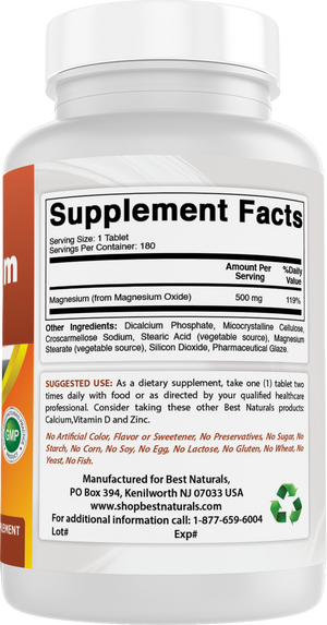 {"id":6886552928417,"title":"Best Naturals Magnesium Oxide 500 mg 180 Tablets","handle":"best-naturals-magnesium-oxide-500-mg-180-tablets","description":"\u003cul data-mce-fragment=\"1\"\u003e\n\u003cli style=\"font-weight: 400;\" data-mce-fragment=\"1\" data-mce-style=\"font-weight: 400;\"\u003e\u003cspan style=\"font-weight: 400;\" data-mce-fragment=\"1\" data-mce-style=\"font-weight: 400;\"\u003e3rd Party Lab Tested for Purity \u0026amp; Quality.\u003c\/span\u003e\u003c\/li\u003e\n\u003cli style=\"font-weight: 400;\" data-mce-fragment=\"1\" data-mce-style=\"font-weight: 400;\"\u003e\u003cspan style=\"font-weight: 400;\" data-mce-fragment=\"1\" data-mce-style=\"font-weight: 400;\"\u003e500 mg of Magnesium Oxide per Tablet - 180 Tablets per Bottle.\u003c\/span\u003e\u003c\/li\u003e\n\u003cli style=\"font-weight: 400;\" data-mce-fragment=\"1\" data-mce-style=\"font-weight: 400;\"\u003e\u003cspan style=\"font-weight: 400;\" data-mce-fragment=\"1\" data-mce-style=\"font-weight: 400;\"\u003eNon-GMO \u0026amp; Gluten-Free.\u003c\/span\u003e\u003c\/li\u003e\n\u003cli style=\"font-weight: 400;\" data-mce-fragment=\"1\" data-mce-style=\"font-weight: 400;\"\u003e\u003cspan style=\"font-weight: 400;\" data-mce-fragment=\"1\" data-mce-style=\"font-weight: 400;\"\u003eProudly Made in USA, GMP Compliant, FDA Registered Facility.\u003c\/span\u003e\u003c\/li\u003e\n\u003cli style=\"font-weight: 400;\" data-mce-fragment=\"1\" data-mce-style=\"font-weight: 400;\"\u003e\u003cspan style=\"font-weight: 400;\" data-mce-fragment=\"1\" data-mce-style=\"font-weight: 400;\"\u003eNo Artificial Color, Flavor, or Sweetener, No Preservatives, No Sugar, No Milk, No Corn, No Soy, No Egg, No Lactose, No Gluten, No Wheat, No Yeast, No Fish. Sodium Free.\u003c\/span\u003e\u003c\/li\u003e\n\u003c\/ul\u003e","published_at":"2021-07-27T14:17:58-04:00","created_at":"2021-07-27T14:17:57-04:00","vendor":"shopbestnaturals.com","type":"","tags":["Supplements"],"price":999,"price_min":999,"price_max":999,"available":true,"price_varies":false,"compare_at_price":1999,"compare_at_price_min":1999,"compare_at_price_max":1999,"compare_at_price_varies":false,"variants":[{"id":40460775719073,"title":"Default Title","option1":"Default Title","option2":null,"option3":null,"sku":"817716013480","requires_shipping":true,"taxable":false,"featured_image":null,"available":true,"name":"Best Naturals Magnesium Oxide 500 mg 180 Tablets","public_title":null,"options":["Default Title"],"price":999,"weight":9,"compare_at_price":1999,"inventory_management":"shopify","barcode":"817716013480","requires_selling_plan":false,"selling_plan_allocations":[]}],"images":["\/\/shopbestnaturals-com.myshopify.com\/cdn\/shop\/products\/image1.jpg?v=1749677371","\/\/shopbestnaturals-com.myshopify.com\/cdn\/shop\/files\/Image-4_fb937f82-ed20-49c0-9f10-8bf0c8659f37.jpg?v=1756477198","\/\/shopbestnaturals-com.myshopify.com\/cdn\/shop\/files\/Image-5_e89d816a-bcaf-41d4-a9a1-a7be5d2ec480.jpg?v=1756477198","\/\/shopbestnaturals-com.myshopify.com\/cdn\/shop\/files\/Image-6_0651c906-5285-408d-9bcc-902530995664.jpg?v=1756477199","\/\/shopbestnaturals-com.myshopify.com\/cdn\/shop\/files\/Image-7_2ca395ee-5462-4fe4-bbf8-6d64eb5d330a.jpg?v=1756477199","\/\/shopbestnaturals-com.myshopify.com\/cdn\/shop\/files\/Image-2_0f98dbdc-9237-495a-92e4-4f601ad7e940.png?v=1756477198","\/\/shopbestnaturals-com.myshopify.com\/cdn\/shop\/files\/Image-3_b0a15450-c54d-40ca-9bbb-ee6a86567be2.png?v=1756477199"],"featured_image":"\/\/shopbestnaturals-com.myshopify.com\/cdn\/shop\/products\/image1.jpg?v=1749677371","options":["Title"],"media":[{"alt":null,"id":24108026560673,"position":1,"preview_image":{"aspect_ratio":0.515,"height":2585,"width":1330,"src":"\/\/shopbestnaturals-com.myshopify.com\/cdn\/shop\/products\/image1.jpg?v=1749677371"},"aspect_ratio":0.515,"height":2585,"media_type":"image","src":"\/\/shopbestnaturals-com.myshopify.com\/cdn\/shop\/products\/image1.jpg?v=1749677371","width":1330},{"alt":null,"id":37677480771801,"position":2,"preview_image":{"aspect_ratio":1.0,"height":1500,"width":1500,"src":"\/\/shopbestnaturals-com.myshopify.com\/cdn\/shop\/files\/Image-4_fb937f82-ed20-49c0-9f10-8bf0c8659f37.jpg?v=1756477198"},"aspect_ratio":1.0,"height":1500,"media_type":"image","src":"\/\/shopbestnaturals-com.myshopify.com\/cdn\/shop\/files\/Image-4_fb937f82-ed20-49c0-9f10-8bf0c8659f37.jpg?v=1756477198","width":1500},{"alt":null,"id":37677480804569,"position":3,"preview_image":{"aspect_ratio":1.0,"height":1500,"width":1500,"src":"\/\/shopbestnaturals-com.myshopify.com\/cdn\/shop\/files\/Image-5_e89d816a-bcaf-41d4-a9a1-a7be5d2ec480.jpg?v=1756477198"},"aspect_ratio":1.0,"height":1500,"media_type":"image","src":"\/\/shopbestnaturals-com.myshopify.com\/cdn\/shop\/files\/Image-5_e89d816a-bcaf-41d4-a9a1-a7be5d2ec480.jpg?v=1756477198","width":1500},{"alt":null,"id":37677480837337,"position":4,"preview_image":{"aspect_ratio":1.0,"height":1500,"width":1500,"src":"\/\/shopbestnaturals-com.myshopify.com\/cdn\/shop\/files\/Image-6_0651c906-5285-408d-9bcc-902530995664.jpg?v=1756477199"},"aspect_ratio":1.0,"height":1500,"media_type":"image","src":"\/\/shopbestnaturals-com.myshopify.com\/cdn\/shop\/files\/Image-6_0651c906-5285-408d-9bcc-902530995664.jpg?v=1756477199","width":1500},{"alt":null,"id":37677480870105,"position":5,"preview_image":{"aspect_ratio":1.0,"height":1500,"width":1500,"src":"\/\/shopbestnaturals-com.myshopify.com\/cdn\/shop\/files\/Image-7_2ca395ee-5462-4fe4-bbf8-6d64eb5d330a.jpg?v=1756477199"},"aspect_ratio":1.0,"height":1500,"media_type":"image","src":"\/\/shopbestnaturals-com.myshopify.com\/cdn\/shop\/files\/Image-7_2ca395ee-5462-4fe4-bbf8-6d64eb5d330a.jpg?v=1756477199","width":1500},{"alt":null,"id":37677480902873,"position":6,"preview_image":{"aspect_ratio":0.523,"height":1500,"width":785,"src":"\/\/shopbestnaturals-com.myshopify.com\/cdn\/shop\/files\/Image-2_0f98dbdc-9237-495a-92e4-4f601ad7e940.png?v=1756477198"},"aspect_ratio":0.523,"height":1500,"media_type":"image","src":"\/