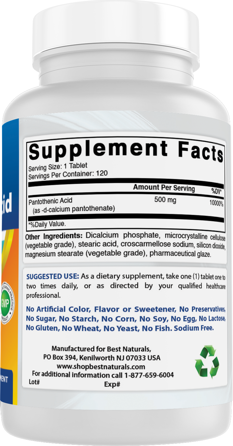 {"id":6886740525217,"title":"Best Naturals Pantothenic Acid 500 mg 120 Tablets","handle":"best-naturals-pantothenic-acid-500-mg-120-tablets","description":"\u003cul\u003e\n\u003cli style=\"font-weight: 400;\"\u003e\u003cspan style=\"font-weight: 400;\"\u003e3rd Party Lab Tested for Purity \u0026amp; Quality.\u003c\/span\u003e\u003c\/li\u003e\n\u003cli style=\"font-weight: 400;\"\u003e\u003cspan style=\"font-weight: 400;\"\u003e500 mg of Pantothenic Acid per Tablet - 120 Tablets per Bottle.\u003c\/span\u003e\u003c\/li\u003e\n\u003cli style=\"font-weight: 400;\"\u003e\u003cspan style=\"font-weight: 400;\"\u003eNon-GMO \u0026amp; Gluten-Free.\u003c\/span\u003e\u003c\/li\u003e\n\u003cli style=\"font-weight: 400;\"\u003e\u003cspan style=\"font-weight: 400;\"\u003eProudly Made in USA, GMP Compliant, FDA Registered Facility.\u003c\/span\u003e\u003c\/li\u003e\n\u003cli style=\"font-weight: 400;\"\u003e\u003cspan style=\"font-weight: 400;\"\u003eNo Artificial Color, Flavor, or Sweetener, No Preservatives, No Sugar, No Milk, No Corn, No Soy, No Egg, No Lactose, No Gluten, No Wheat, No Yeast, No Fish. Sodium Free.\u003c\/span\u003e\u003c\/li\u003e\n\u003c\/ul\u003e","published_at":"2021-07-27T16:02:37-04:00","created_at":"2021-07-27T16:02:35-04:00","vendor":"shopbestnaturals.com","type":"","tags":["Supplements"],"price":999,"price_min":999,"price_max":999,"available":true,"price_varies":false,"compare_at_price":2499,"compare_at_price_min":2499,"compare_at_price_max":2499,"compare_at_price_varies":false,"variants":[{"id":40461261963425,"title":"Default Title","option1":"Default Title","option2":null,"option3":null,"sku":"817716018478","requires_shipping":true,"taxable":false,"featured_image":null,"available":true,"name":"Best Naturals Pantothenic Acid 500 mg 120 Tablets","public_title":null,"options":["Default Title"],"price":999,"weight":159,"compare_at_price":2499,"inventory_management":"shopify","barcode":"817716018478","requires_selling_plan":false,"selling_plan_allocations":[]}],"images":["\/\/shopbestnaturals-com.myshopify.com\/cdn\/shop\/products\/71LwmohEw-L._AC_SL1500.jpg?v=1749677431","\/\/shopbestnaturals-com.myshopify.com\/cdn\/shop\/files\/Image-4_8703d591-c091-48cd-98ea-91a07f96109d.jpg?v=1758568919","\/\/shopbestnaturals-com.myshopify.com\/cdn\/shop\/files\/Image-5_5cefed20-c5f7-4939-a647-bd738207a868.jpg?v=1758568919","\/\/shopbestnaturals-com.myshopify.com\/cdn\/shop\/files\/Image-6_59f4a7ff-7bf0-40e5-87f5-eaef830cbb9f.jpg?v=1758568919","\/\/shopbestnaturals-com.myshopify.com\/cdn\/shop\/files\/Image-7_2c738391-a6fd-4428-969a-2c44ae01246e.jpg?v=1758568920","\/\/shopbestnaturals-com.myshopify.com\/cdn\/shop\/files\/Image-2_c888b1ff-2b26-4e33-9765-a2b59334eb8e.png?v=1758568919","\/\/shopbestnaturals-com.myshopify.com\/cdn\/shop\/files\/Image-3_36474e36-a6af-44de-85ff-bdf5cde3e841.png?v=1758568919"],"featured_image":"\/\/shopbestnaturals-com.myshopify.com\/cdn\/shop\/products\/71LwmohEw-L._AC_SL1500.jpg?v=1749677431","options":["Title"],"media":[{"alt":"Best Naturals Pantothenic Acid 500 mg 120 Tablets - shopbestnaturals.com","id":22822583861409,"position":1,"preview_image":{"aspect_ratio":0.523,"height":1500,"width":784,"src":"\/\/shopbestnaturals-com.myshopify.com\/cdn\/shop\/products\/71LwmohEw-L._AC_SL1500.jpg?v=1749677431"},"aspect_ratio":0.523,"height":1500,"media_type":"image","src":"\/\/shopbestnaturals-com.myshopify.com\/cdn\/shop\/products\/71LwmohEw-L._AC_SL1500.jpg?v=1749677431","width":784},{"alt":null,"id":37766494781657,"position":2,"preview_image":{"aspect_ratio":1.0,"height":1500,"width":1500,"src":"\/\/shopbestnaturals-com.myshopify.com\/cdn\/shop\/files\/Image-4_8703d591-c091-48cd-98ea-91a07f96109d.jpg?v=1758568919"},"aspect_ratio":1.0,"height":1500,"media_type":"image","src":"\/\/shopbestnaturals-com.myshopify.com\/cdn\/shop\/files\/Image-4_8703d591-c091-48cd-98ea-91a07f96109d.jpg?v=1758568919","width":1500},{"alt":null,"id":37766494814425,"position":3,"preview_image":{"aspect_ratio":1.0,"height":1500,"width":1500,"src":"\/\/shopbestnaturals-com.myshopify.com\/cdn\/shop\/files\/Image-5_5cefed20-c5f7-4939-a647-bd738207a868.jpg?v=1758568919"},"aspect_ratio":1.0,"height":1500,"media_type":"image","src":"\/\/shopbestnaturals-com.myshopify.com\/cdn\/shop\/files\/Image-5_5cefed20-c5f7-4939-a647-bd738207a868.jpg?v=1758568919","width":1500},{"alt":null,"id":37766494847193,"position":4,"preview_image":{"aspect_ratio":1.0,"height":1500,"width":1500,"src":"\/\/shopbestnaturals-com.myshopify.com\/cdn\/shop\/files\/Image-6_59f4a7ff-7bf0-40e5-87f5-eaef830cbb9f.jpg?v=1758568919"},"aspect_ratio":1.0,"height":1500,"media_type":"image","src":"\/\/shopbestnaturals-com.myshopify.com\/cdn\/shop\/files\/Image-6_59f4a7ff-7bf0-40e5-87f5-eaef830cbb9f.jpg?v=1758568919","width":1500},{"alt":null,"id":37766494879961,"position":5,"preview_image":{"aspect_ratio":1.0,"height":1500,"width":1500,"src":"\/\/shopbestnaturals-com.myshopify.com\/cdn\/shop\/files\/Image-7_2c738391-a6fd-4428-969a-2c44ae01246e.jpg?v=1758568920"},"aspect_ratio":1.0,"height":1500,"media_type":"image","src":"\/\/shopbestnaturals-com.myshopify.com\/cdn\/shop\/files\/Image-7_2c738391-a6fd-4428-969a-2c44ae01246e.jpg?v=1758568920","width":1500},{"alt":null,"id":37766494945497,"position":6,"preview_image":{"aspect_ratio":0.523,"height":1500,"width":785,"src":"\/\/shopbestnaturals-com.myshopify.com\/cdn\/shop\/files\/Image-2_c888b1ff-2b26-4e33-9765-a2b59334eb8e.png?v=1758568919"},"aspect_ratio":0.523,"height":1500,"media_type":"image","src":"\/\/shopbestnaturals-com.myshopify.com\/cdn\/shop\/files\/Image-2_c888b1ff-2b26-4e33-9765-a2b59334eb8e.png?v=1758568919","width":785},{"alt":null,"id":37766495011033,"position":7,"preview_image":{"aspect_ratio":0.523,"height":1500,"width":785,"src":"\/\/shopbestnaturals-com.myshopify.com\/cdn\/shop\/files\/Image-3_36474e36-a6af-44de-85ff-bdf5cde3e841.png?v=1758568919"},"aspect_ratio":0.523,"height":1500,"media_type":"image","src":"\/\/shopbestnaturals-com.myshopify.com\/cdn\/shop\/files\/Image