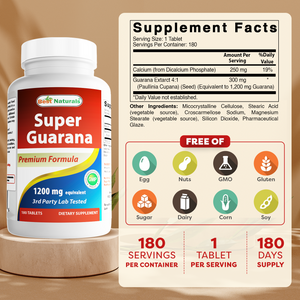 {"id":4797994795145,"title":"Best Naturals Super Guarana 1200 mg 180 Tablets","handle":"best-naturals-super-guarana-1200-mg-180-tablets","description":"\u003cul data-mce-fragment=\"1\"\u003e\n\u003cli style=\"font-weight: 400;\" data-mce-fragment=\"1\"\u003e\u003cspan style=\"font-weight: 400;\" data-mce-fragment=\"1\"\u003e3rd Party Lab Tested for Purity \u0026amp; Quality.\u003c\/span\u003e\u003c\/li\u003e\n\u003cli style=\"font-weight: 400;\" data-mce-fragment=\"1\"\u003e\u003cspan style=\"font-weight: 400;\" data-mce-fragment=\"1\"\u003e1200 mg of Super Guarana per Tablet - 180 Tablets per Bottle.\u003c\/span\u003e\u003c\/li\u003e\n\u003cli style=\"font-weight: 400;\" data-mce-fragment=\"1\"\u003e\u003cspan style=\"font-weight: 400;\" data-mce-fragment=\"1\"\u003eNon-GMO \u0026amp; Gluten-Free.\u003c\/span\u003e\u003c\/li\u003e\n\u003cli style=\"font-weight: 400;\" data-mce-fragment=\"1\"\u003e\u003cspan style=\"font-weight: 400;\" data-mce-fragment=\"1\"\u003eProudly Made in USA, GMP Compliant, FDA Registered Facility.\u003c\/span\u003e\u003c\/li\u003e\n\u003cli style=\"font-weight: 400;\" data-mce-fragment=\"1\"\u003e\u003cspan style=\"font-weight: 400;\" data-mce-fragment=\"1\"\u003eNo Artificial Color, Flavor, or Sweetener, No Preservatives, No Sugar, No Milk, No Corn, No Soy, No Egg, No Lactose, No Gluten, No Wheat, No Yeast, No Fish. Sodium Free.\u003c\/span\u003e\u003c\/li\u003e\n\u003c\/ul\u003e","published_at":"2020-04-03T06:07:59-04:00","created_at":"2020-04-03T10:41:18-04:00","vendor":"shopbestnaturals.com","type":"","tags":["Herbal Products"],"price":1299,"price_min":1299,"price_max":1299,"available":true,"price_varies":false,"compare_at_price":3499,"compare_at_price_min":3499,"compare_at_price_max":3499,"compare_at_price_varies":false,"variants":[{"id":33203918274697,"title":"Default Title","option1":"Default Title","option2":null,"option3":null,"sku":"817716010656","requires_shipping":true,"taxable":false,"featured_image":null,"available":true,"name":"Best Naturals Super Guarana 1200 mg 180 Tablets","public_title":null,"options":["Default Title"],"price":1299,"weight":345,"compare_at_price":3499,"inventory_management":"shopify","barcode":"817716010656","requires_selling_plan":false,"selling_plan_allocations":[]}],"images":["\/\/shopbestnaturals-com.myshopify.com\/cdn\/shop\/products\/Image-1_2d7b58fd-4858-4ffb-81c0-6d4c463bd615.jpg?v=1749676466","\/\/shopbestnaturals-com.myshopify.com\/cdn\/shop\/files\/Image-4_10dc223c-ec15-4c84-a00b-894916c24cea.png?v=1757014117","\/\/shopbestnaturals-com.myshopify.com\/cdn\/shop\/files\/Image-5_2174dbb1-5e87-460f-96ad-8adfa8c25f54.png?v=1757014117","\/\/shopbestnaturals-com.myshopify.com\/cdn\/shop\/files\/Image-6_a5a8c38c-8db2-44a7-9f9b-18dd936be613.jpg?v=1757014117","\/\/shopbestnaturals-com.myshopify.com\/cdn\/shop\/files\/Image-7_2adf3dd9-7e2c-4405-b8e7-438a32554fe5.jpg?v=1757014116","\/\/shopbestnaturals-com.myshopify.com\/cdn\/shop\/files\/Image-2_5202f467-7f81-4219-a975-16cd50f5f8ba.png?v=1757014116","\/\/shopbestnaturals-com.myshopify.com\/cdn\/shop\/files\/Image-3_12d5dff9-98fa-41ff-9e4f-ba6e231b40a2.png?v=1757014117"],"featured_image":"\/\/shopbestnaturals-com.myshopify.com\/cdn\/shop\/products\/Image-1_2d7b58fd-4858-4ffb-81c0-6d4c463bd615.jpg?v=1749676466","options":["Title"],"media":[{"alt":"Best Naturals Super Guarana 1200 mg 180 Tablets - shopbestnaturals.com","id":12148704280737,"position":1,"preview_image":{"aspect_ratio":0.525,"height":2574,"width":1351,"src":"\/\/shopbestnaturals-com.myshopify.com\/cdn\/shop\/products\/Image-1_2d7b58fd-4858-4ffb-81c0-6d4c463bd615.jpg?v=1749676466"},"aspect_ratio":0.525,"height":2574,"media_type":"image","src":"\/\/shopbestnaturals-com.myshopify.com\/cdn\/shop\/products\/Image-1_2d7b58fd-4858-4ffb-81c0-6d4c463bd615.jpg?v=1749676466","width":1351},{"alt":null,"id":37699265298649,"position":2,"preview_image":{"aspect_ratio":1.0,"height":1500,"width":1500,"src":"\/\/shopbestnaturals-com.myshopify.com\/cdn\/shop\/files\/Image-4_10dc223c-ec15-4c84-a00b-894916c24cea.png?v=1757014117"},"aspect_ratio":1.0,"height":1500,"media_type":"image","src":"\/\/shopbestnaturals-com.myshopify.com\/cdn\/shop\/files\/Image-4_10dc223c-ec15-4c84-a00b-894916c24cea.png?v=1757014117","width":1500},{"alt":null,"id":37699265331417,"position":3,"preview_image":{"aspect_ratio":1.0,"height":1500,"width":1500,"src":"\/\/shopbestnaturals-com.myshopify.com\/cdn\/shop\/files\/Image-5_2174dbb1-5e87-460f-96ad-8adfa8c25f54.png?v=1757014117"},"aspect_ratio":1.0,"height":1500,"media_type":"image","src":"\/\/shopbestnaturals-com.myshopify.com\/cdn\/shop\/files\/Image-5_2174dbb1-5e87-460f-96ad-8adfa8c25f54.png?v=1757014117","width":1500},{"alt":null,"id":37699265364185,"position":4,"preview_image":{"aspect_ratio":1.0,"height":1500,"width":1500,"src":"\/\/shopbestnaturals-com.myshopify.com\/cdn\/shop\/files\/Image-6_a5a8c38c-8db2-44a7-9f9b-18dd936be613.jpg?v=1757014117"},"aspect_ratio":1.0,"height":1500,"media_type":"image","src":"\/\/shopbestnaturals-com.myshopify.com\/cdn\/shop\/files\/Image-6_a5a8c38c-8db2-44a7-9f9b-18dd936be613.jpg?v=1757014117","width":1500},{"alt":null,"id":37699265396953,"position":5,"preview_image":{"aspect_ratio":1.0,"height":1500,"width":1500,"src":"\/\/shopbestnaturals-com.myshopify.com\/cdn\/shop\/files\/Image-7_2adf3dd9-7e2c-4405-b8e7-438a32554fe5.jpg?v=1757014116"},"aspect_ratio":1.0,"height":1500,"media_type":"image","src":"\/\/shopbestnaturals-com.myshopify.com\/cdn\/shop\/files\/Image-7_2adf3dd9-7e2c-4405-b8e7-438a32554fe5.jpg?v=1757014116","width":1500},{"alt":null,"id":37699265429721,"position":6,"preview_image":{"aspect_ratio":0.523,"height":1500,"width":785,"src":"\/\/shopbestnaturals-com.myshopify.com\/cdn\/shop\/files\/Image-2_5202f467-7f81-4219-a975-16cd50f5f8ba.png?v=1757014116"},"aspect_ratio":0.523,"height":1500,"media_type":"image","src":"\/\/shopbestnaturals-com.myshopify.com\/cdn\/shop\/files\/Image-2_5202f467-7f81-4219-a975-16cd50f5f8ba.png?v=1757014116","width":785},{"alt":null,