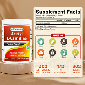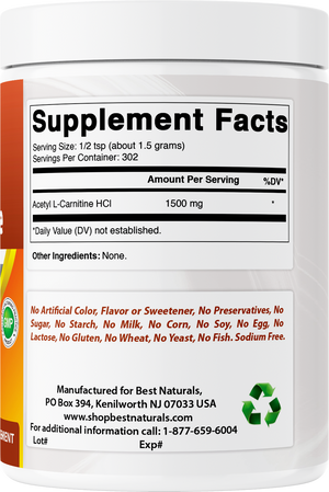 Best Naturals Acetyl L-Carnitine Premium Powder -1 LB -Gluten Free.