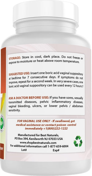 {"id":9221333450969,"title":"Best Naturals Boric Acid Vaginal Suppositories - Made in USA - USP Medical Grade Fine Powder, Easy Dissolve, Third Party Tested - 60 Count","handle":"best-naturals-boric-acid-vaginal-suppositories-made-in-usa-usp-medical-grade-fine-powder-easy-dissolve-third-party-tested-60-count","description":"\u003cul class=\"a-unordered-list a-vertical a-spacing-mini\"\u003e\n\u003cli class=\"a-spacing-mini\"\u003e\u003cspan class=\"a-list-item\"\u003eSupports Vaginal pH Balance, Odor Control*\u003c\/span\u003e\u003c\/li\u003e\n\u003cli class=\"a-spacing-mini\"\u003e\u003cspan class=\"a-list-item\"\u003eSupports a Healthy pH Blanace*\u003c\/span\u003e\u003c\/li\u003e\n\u003cli class=\"a-spacing-mini\"\u003e\u003cspan class=\"a-list-item\"\u003eMade with High Quality USP Grade Boric Acid\u003c\/span\u003e\u003c\/li\u003e\n\u003cli class=\"a-spacing-mini\"\u003e\u003cspan class=\"a-list-item\"\u003eSafe, Easy Use \u0026amp; Effective Natural Suport for Vaginal Discomfort*\u003c\/span\u003e\u003c\/li\u003e\n\u003cli class=\"a-spacing-mini\"\u003e\u003cspan class=\"a-list-item\"\u003eGMP \u0026amp; MADE IN THE USA - We use only the finest ingredients, all of which are manufactured in our US, GMP compliant, state-of-the-art, facility. Every batch is laboratory tested for quality assurance.\u003c\/span\u003e\u003c\/li\u003e\n\u003c\/ul\u003e","published_at":"2025-07-01T14:13:11-04:00","created_at":"2025-07-01T14:13:10-04:00","vendor":"shopbestnaturals.com","type":"","tags":[],"price":899,"price_min":899,"price_max":899,"available":true,"price_varies":false,"compare_at_price":1799,"compare_at_price_min":1799,"compare_at_price_max":1799,"compare_at_price_varies":false,"variants":[{"id":46742537535705,"title":"Default Title","option1":"Default Title","option2":null,"option3":null,"sku":"840274308217","requires_shipping":true,"taxable":true,"featured_image":null,"available":true,"name":"Best Naturals Boric Acid Vaginal Suppositories - Made in USA - USP Medical Grade Fine Powder, Easy Dissolve, Third Party Tested - 60 Count","public_title":null,"options":["Default Title"],"price":899,"weight":45,"compare_at_price":1799,"inventory_management":"shopify","barcode":"840274308217","requires_selling_plan":false,"selling_plan_allocations":[]}],"images":["\/\/shopbestnaturals-com.myshopify.com\/cdn\/shop\/files\/61N_4-pQEdL._AC_SL1500.jpg?v=1751393484","\/\/shopbestnaturals-com.myshopify.com\/cdn\/shop\/files\/71gutLJQ08L._AC_SL1500.jpg?v=1751393486","\/\/shopbestnaturals-com.myshopify.com\/cdn\/shop\/files\/81b0W9w7DJL._AC_SL1500.jpg?v=1751393488","\/\/shopbestnaturals-com.myshopify.com\/cdn\/shop\/files\/81cKgqAhrtL._AC_SL1500_3dcbb4e7-34b1-495e-ab8d-3de8f270494b.jpg?v=1751393490","\/\/shopbestnaturals-com.myshopify.com\/cdn\/shop\/files\/Image-7_e4302312-4792-44e2-a06c-b3c2c94deddf.jpg?v=1756223778","\/\/shopbestnaturals-com.myshopify.com\/cdn\/shop\/files\/61GdWh0dpGL._AC_SL1500.jpg?v=1756223778","\/\/shopbestnaturals-com.myshopify.com\/cdn\/shop\/files\/61uxdPmETfL._AC_SL1500.jpg?v=1756223778"],"featured_image":"\/\/shopbestnaturals-com.myshopify.com\/cdn\/shop\/files\/61N_4-pQEdL._AC_SL1500.jpg?v=1751393484","options":["Title"],"media":[{"alt":null,"id":37364041122009,"position":1,"preview_image":{"aspect_ratio":0.523,"height":1500,"width":785,"src":"\/\/shopbestnaturals-com.myshopify.com\/cdn\/shop\/files\/61N_4-pQEdL._AC_SL1500.jpg?v=1751393484"},"aspect_ratio":0.523,"height":1500,"media_type":"image","src":"\/\/shopbestnaturals-com.myshopify.com\/cdn\/shop\/files\/61N_4-pQEdL._AC_SL1500.jpg?v=1751393484","width":785},{"alt":null,"id":37364041154777,"position":2,"preview_image":{"aspect_ratio":1.0,"height":1500,"width":1500,"src":"\/\/shopbestnaturals-com.myshopify.com\/cdn\/shop\/files\/71gutLJQ08L._AC_SL1500.jpg?v=1751393486"},"aspect_ratio":1.0,"height":1500,"media_type":"image","src":"\/\/shopbestnaturals-com.myshopify.com\/cdn\/shop\/files\/71gutLJQ08L._AC_SL1500.jpg?v=1751393486","width":1500},{"alt":null,"id":37364041220313,"position":3,"preview_image":{"aspect_ratio":1.0,"height":1500,"width":1500,"src":"\/\/shopbestnaturals-com.myshopify.com\/cdn\/shop\/files\/81b0W9w7DJL._AC_SL1500.jpg?v=1751393488"},"aspect_ratio":1.0,"height":1500,"media_type":"image","src":"\/\/shopbestnaturals-com.myshopify.com\/cdn\/shop\/files\/81b0W9w7DJL._AC_SL1500.jpg?v=1751393488","width":1500},{"alt":null,"id":37364041253081,"position":4,"preview_image":{"aspect_ratio":1.0,"height":1500,"width":1500,"src":"\/\/shopbestnaturals-com.myshopify.com\/cdn\/shop\/files\/81cKgqAhrtL._AC_SL1500_3dcbb4e7-34b1-495e-ab8d-3de8f270494b.jpg?v=1751393490"},"aspect_ratio":1.0,"height":1500,"media_type":"image","src":"\/\/shopbestnaturals-com.myshopify.com\/cdn\/shop\/files\/81cKgqAhrtL._AC_SL1500_3dcbb4e7-34b1-495e-ab8d-3de8f270494b.jpg?v=1751393490","width":1500},{"alt":null,"id":37658306707673,"position":5,"preview_image":{"aspect_ratio":1.0,"height":1500,"width":1500,"src":"\/\/shopbestnaturals-com.myshopify.com\/cdn\/shop\/files\/Image-7_e4302312-4792-44e2-a06c-b3c2c94deddf.jpg?v=1756223778"},"aspect_ratio":1.0,"height":1500,"media_type":"image","src":"\/\/shopbestnaturals-com.myshopify.com\/cdn\/shop\/files\/Image-7_e4302312-4792-44e2-a06c-b3c2c94deddf.jpg?v=1756223778","width":1500},{"alt":null,"id":37364041318617,"position":6,"preview_image":{"aspect_ratio":0.523,"height":1500,"width":785,"src":"\/\/shopbestnaturals-com.myshopify.com\/cdn\/shop\/files\/61GdWh0dpGL._AC_SL1500.jpg?v=1756223778"},"aspect_ratio":0.523,"height":1500,"media_type":"image","src":"\/\/shopbestnaturals-com.myshopify.com\/cdn\/shop\/files\/61GdWh0dpGL._AC_SL1500.jpg?v=1756223778","width":785},{"alt":null,"id":37364041351385,"position":7,"preview_image":{"aspect_ratio":0.523,"height":1500,"width":785,"src":"\/\/shopbestnaturals-com.myshopify.com\/cdn\/shop\/files\/61uxdPmETfL._AC_SL1500.jpg?v=1756223778"},"aspect_ratio":0.523,"height":1500,"media_type":"image","src":"\/\/shopbestnaturals-com.myshopify.com\/cdn\/shop\/files\/61uxdPmET