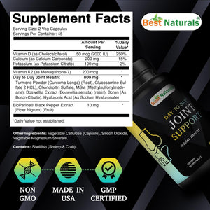 {"id":9134912897241,"title":"Best Naturals Day-to-Day Joint Support 90 Veg Capsules - Made with Vitmain D, K2, Calcium, Potassium, Turmeric, Glucosamine, Chondroitin, MSM","handle":"best-naturals-day-to-day-joint-support-90-veg-capsules-made-with-vitmain-d-k2-calcium-potassium-turmeric-glucosamine-chondroitin-msm","description":"\u003cdiv id=\"productDescription_feature_div\" class=\"celwidget\" data-feature-name=\"productDescription\" data-csa-c-type=\"widget\" data-csa-c-content-id=\"productDescription\" data-csa-c-slot-id=\"productDescription_feature_div\" data-csa-c-asin=\"\" data-csa-c-is-in-initial-active-row=\"false\" data-cel-widget=\"productDescription_feature_div\" data-csa-c-id=\"vs1mu-f2k6kl-b40wck-wob93s\"\u003e\n\u003cdiv\u003e\n\u003cdiv data-feature-name=\"productDescription\" data-template-name=\"productDescription\" id=\"productDescription_feature_div\" class=\"a-row feature\" data-cel-widget=\"productDescription_feature_div\"\u003e\n\u003cdiv id=\"productDescription\" class=\"a-section a-spacing-small\"\u003e\n\u003cp\u003e\u003cspan\u003eBest Naturals Day-to-Day Joint Support is a comprehensive joint health supplement designed to provide your body with the nutrients it needs for optimal joint comfort and mobility. This powerful formula combines key ingredients such as Vitamin D, K2, Calcium, Potassium, Turmeric, Glucosamine, Chondroitin, MSM, Boswellia, Bioperine, Hyaluronic Acid, and Boron. Each easy-to-swallow capsule is made in the USA with premium, non-GMO ingredients, ensuring high quality and safety.\u003c\/span\u003e\u003c\/p\u003e\n\u003c\/div\u003e\n\u003c\/div\u003e\n\u003c\/div\u003e\n\u003c\/div\u003e\n\u003cdiv id=\"btfSubNavDesktop_feature_div\" class=\"celwidget\" data-feature-name=\"btfSubNavDesktop\" data-csa-c-type=\"widget\" data-csa-c-content-id=\"btfSubNavDesktop\" data-csa-c-slot-id=\"btfSubNavDesktop_feature_div\" data-csa-c-asin=\"\" data-csa-c-is-in-initial-active-row=\"false\" data-cel-widget=\"btfSubNavDesktop_feature_div\" data-csa-c-id=\"vx31k4-3u78d4-wqol7-ii3621\"\u003e\n\u003cdiv id=\"btf-sub-nav-desktop-wrapper\" class=\"a-row a-size-base\" role=\"navigation\"\u003e\n\u003cnav id=\"btf-sub-nav-desktop-tabs\" class=\"\" aria-label=\"Navigate within the product detail page\"\u003e\u003c\/nav\u003e\u003cnav class=\"\" aria-label=\"Navigate within the product detail page\"\u003e\n\u003cul class=\"a-unordered-list a-vertical a-spacing-mini\"\u003e\n\u003cli class=\"a-spacing-mini\"\u003e\u003cspan class=\"a-list-item\"\u003eComprehensive Joint Formula: Contains a blend of vitamins, minerals, and herbal ingredients to support joint health.\u003c\/span\u003e\u003c\/li\u003e\n\u003cli class=\"a-spacing-mini\"\u003e\u003cspan class=\"a-list-item\"\u003eKey Nutrients: Includes Vitamin D, K2, Calcium, and Potassium to help maintain bone health and support overall joint function.\u003c\/span\u003e\u003c\/li\u003e\n\u003cli class=\"a-spacing-mini\"\u003e\u003cspan class=\"a-list-item\"\u003eJoint Support Complex: Features Glucosamine, Chondroitin, MSM, and Hyaluronic Acid to help support healthy cartilage and lubricate joints.\u003c\/span\u003e\u003c\/li\u003e\n\u003cli class=\"a-spacing-mini\"\u003e\u003cspan class=\"a-list-item\"\u003eEnhanced Absorption: Contains Bioperine for better nutrient absorption and utilization in the body.\u003c\/span\u003e\u003c\/li\u003e\n\u003cli class=\"a-spacing-mini\"\u003e\u003cspan class=\"a-list-item\"\u003eUSA-Made \u0026amp; Non-GMO: Manufactured in a GMP-certified facility with premium, non-GMO ingredients.\u003c\/span\u003e\u003c\/li\u003e\n\u003cli class=\"a-spacing-mini\"\u003e\u003cspan class=\"a-list-item\"\u003e90 Veg Capsules: Convenient and easy-to-take capsules for daily support.\u003c\/span\u003e\u003c\/li\u003e\n\u003c\/ul\u003e\n\u003c\/nav\u003e\n\u003c\/div\u003e\n\u003c\/div\u003e","published_at":"2025-03-10T15:29:05-04:00","created_at":"2025-03-10T15:29:05-04:00","vendor":"shopbestnaturals.com","type":"","tags":[],"price":2799,"price_min":2799,"price_max":2799,"available":true,"price_varies":false,"compare_at_price":3699,"compare_at_price_min":3699,"compare_at_price_max":3699,"compare_at_price_varies":false,"variants":[{"id":46457561514201,"title":"Default Title","option1":"Default Title","option2":null,"option3":null,"sku":"840274307869","requires_shipping":true,"taxable":true,"featured_image":null,"available":true,"name":"Best Naturals Day-to-Day Joint Support 90 Veg Capsules - Made with Vitmain D, K2, Calcium, Potassium, Turmeric, Glucosamine, Chondroitin, MSM","public_title":null,"options":["Default Title"],"price":2799,"weight":147,"compare_at_price":3699,"inventory_management":"shopify","barcode":"840274307869","requires_selling_plan":false,"selling_plan_allocations":[]}],"images":["\/\/shopbestnaturals-com.myshopify.com\/cdn\/shop\/files\/Banner-01_09ad49a0-64d4-487d-b415-0ab989b66933.jpg?v=1749678015","\/\/shopbestnaturals-com.myshopify.com\/cdn\/shop\/files\/Banner-04_ac187a20-15de-4e92-be74-293ca31d46ab.jpg?v=1749678016","\/\/shopbestnaturals-com.myshopify.com\/cdn\/shop\/files\/Banner-05_fe4e72d7-3095-4c3d-b2c4-0c572b54f44d.jpg?v=1749678017","\/\/shopbestnaturals-com.myshopify.com\/cdn\/shop\/files\/Banner-06_f4114e0c-f8a5-43ad-8949-517b8357ec9e.jpg?v=1749678019","\/\/shopbestnaturals-com.myshopify.com\/cdn\/shop\/files\/Banner-03_dabfbb33-f1ba-43cf-a647-d8d40ebf129f.png?v=1749678021","\/\/shopbestnaturals-com.myshopify.com\/cdn\/shop\/files\/Banner-02_6b683242-f0de-4029-bb0e-7dc2b045b06a.png?v=1749678024"],"featured_image":"\/\/shopbestnaturals-com.myshopify.com\/cdn\/shop\/files\/Banner-01_09ad49a0-64d4-487d-b415-0ab989b66933.jpg?v=1749678015","options":["Title"],"media":[{"alt":null,"id":36847989719257,"position":1,"preview_image":{"aspect_ratio":1.0,"height":1500,"width":1500,"src":"\/\/shopbestnaturals-com.myshopify.com\/cdn\/shop\/files\/Banner-01_09ad49a0-64d4-487d-b415-0ab989b66933.jpg?v=1749678015"},"aspect_ratio":1.0,"height":1500,"media_type":"image","src":"\/\/shopbestn