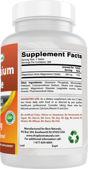 {"id":9221334237401,"title":"Best Naturals Magnesium Oxide 500mg 360 Tablets - 1 Year Supply - Magnesium for Immune Support, Muscle Recovery, Leg Cramps, Relaxation","handle":"best-naturals-magnesium-oxide-500mg-360-tablets-1-year-supply-magnesium-for-immune-support-muscle-recovery-leg-cramps-relaxation","description":"\u003cdiv id=\"featurebullets_feature_div\" class=\"celwidget\" data-feature-name=\"featurebullets\" data-csa-c-type=\"widget\" data-csa-c-content-id=\"featurebullets\" data-csa-c-slot-id=\"featurebullets_feature_div\" data-csa-c-asin=\"B0BBSK4VBN\" data-csa-c-is-in-initial-active-row=\"false\" data-csa-c-id=\"unh9u4-761ij4-lhwk1h-ky7kjn\" data-cel-widget=\"featurebullets_feature_div\"\u003e\n\u003cdiv id=\"feature-bullets\" class=\"a-section a-spacing-medium a-spacing-top-small\"\u003e\n\u003cul class=\"a-unordered-list a-vertical a-spacing-mini\"\u003e\n\u003cli class=\"a-spacing-mini\"\u003e\u003cspan class=\"a-list-item\"\u003e500 mg Magnesium Oxide Per Tablet – Simple, effective formula for daily mineral intake.\u003c\/span\u003e\u003c\/li\u003e\n\u003cli class=\"a-spacing-mini\"\u003e\u003cspan class=\"a-list-item\"\u003e1-Year Supply – 360 tablets per bottle, ideal for long-term use.\u003c\/span\u003e\u003c\/li\u003e\n\u003cli class=\"a-spacing-mini\"\u003e\u003cspan class=\"a-list-item\"\u003eClean \u0026amp; Allergen-Free – No artificial colors, flavors, sweeteners, preservatives, or common allergens (milk, soy, eggs, corn, gluten, wheat, yeast, fish).\u003c\/span\u003e\u003c\/li\u003e\n\u003cli class=\"a-spacing-mini\"\u003e\u003cspan class=\"a-list-item\"\u003eNon-GMO \u0026amp; Gluten-Free – Made without genetically modified ingredients and suitable for gluten-sensitive individuals.\u003c\/span\u003e\u003c\/li\u003e\n\u003cli class=\"a-spacing-mini\"\u003e\u003cspan class=\"a-list-item\"\u003eMade in the USA – Produced in a GMP-compliant, FDA-registered facility with third-party lab testing for quality assurance.\u003c\/span\u003e\u003c\/li\u003e\n\u003c\/ul\u003e\n\u003c\/div\u003e\n\u003c\/div\u003e\n\u003cdiv id=\"provenanceCertifications_feature_div\" class=\"celwidget\" data-feature-name=\"provenanceCertifications\" data-csa-c-type=\"widget\" data-csa-c-content-id=\"provenanceCertifications\" data-csa-c-slot-id=\"provenanceCertifications_feature_div\" data-csa-c-asin=\"B0BBSK4VBN\" data-csa-c-is-in-initial-active-row=\"false\" data-csa-c-id=\"jr75f-81pos0-h37fpg-a99jig\" data-cel-widget=\"provenanceCertifications_feature_div\"\u003e\n\u003cdiv id=\"provenance-certifications\" class=\"a-section a-spacing-medium a-spacing-top-micro\"\u003e\u003c\/div\u003e\n\u003c\/div\u003e","published_at":"2025-07-01T14:17:45-04:00","created_at":"2025-07-01T14:17:44-04:00","vendor":"shopbestnaturals.com","type":"","tags":[],"price":1899,"price_min":1899,"price_max":1899,"available":true,"price_varies":false,"compare_at_price":3899,"compare_at_price_min":3899,"compare_at_price_max":3899,"compare_at_price_varies":false,"variants":[{"id":46742538944729,"title":"Default Title","option1":"Default Title","option2":null,"option3":null,"sku":"840274306411","requires_shipping":true,"taxable":true,"featured_image":null,"available":true,"name":"Best Naturals Magnesium Oxide 500mg 360 Tablets - 1 Year Supply - Magnesium for Immune Support, Muscle Recovery, Leg Cramps, Relaxation","public_title":null,"options":["Default Title"],"price":1899,"weight":170,"compare_at_price":3899,"inventory_management":"shopify","barcode":"840274306411","requires_selling_plan":false,"selling_plan_allocations":[]}],"images":["\/\/shopbestnaturals-com.myshopify.com\/cdn\/shop\/files\/7194a6eMqWL._AC_SL1500.jpg?v=1751393745","\/\/shopbestnaturals-com.myshopify.com\/cdn\/shop\/files\/Image-4_79e9b5d0-3a1a-4d52-824b-1c995e014181.jpg?v=1756477246","\/\/shopbestnaturals-com.myshopify.com\/cdn\/shop\/files\/Image-5_398b73ea-b104-45bf-98f0-4ed5a5b956d6.jpg?v=1756477247","\/\/shopbestnaturals-com.myshopify.com\/cdn\/shop\/files\/Image-6_be84b202-3b96-47f5-bf8b-5e8af81b9250.jpg?v=1756477247","\/\/shopbestnaturals-com.myshopify.com\/cdn\/shop\/files\/Image-7_6d7f77e8-0af7-45cc-b236-20b025327174.jpg?v=1756477247","\/\/shopbestnaturals-com.myshopify.com\/cdn\/shop\/files\/Image-2_427f05ce-611f-4417-a8ab-ded9a7181dc9.png?v=1756477247","\/\/shopbestnaturals-com.myshopify.com\/cdn\/shop\/files\/Image-3_a93e7247-169b-4539-8f3f-9c82064dbc0e.png?v=1756477247"],"featured_image":"\/\/shopbestnaturals-com.myshopify.com\/cdn\/shop\/files\/7194a6eMqWL._AC_SL1500.jpg?v=1751393745","options":["Title"],"media":[{"alt":null,"id":37364046528729,"position":1,"preview_image":{"aspect_ratio":0.519,"height":1500,"width":778,"src":"\/\/shopbestnaturals-com.myshopify.com\/cdn\/shop\/files\/7194a6eMqWL._AC_SL1500.jpg?v=1751393745"},"aspect_ratio":0.519,"height":1500,"media_type":"image","src":"\/\/shopbestnaturals-com.myshopify.com\/cdn\/shop\/files\/7194a6eMqWL._AC_SL1500.jpg?v=1751393745","width":778},{"alt":null,"id":37677481394393,"position":2,"preview_image":{"aspect_ratio":1.0,"height":1500,"width":1500,"src":"\/\/shopbestnaturals-com.myshopify.com\/cdn\/shop\/files\/Image-4_79e9b5d0-3a1a-4d52-824b-1c995e014181.jpg?v=1756477246"},"aspect_ratio":1.0,"height":1500,"media_type":"image","src":"\/\/shopbestnaturals-com.myshopify.com\/cdn\/shop\/files\/Image-4_79e9b5d0-3a1a-4d52-824b-1c995e014181.jpg?v=1756477246","width":1500},{"alt":null,"id":37677481427161,"position":3,"preview_image":{"aspect_ratio":1.0,"height":1500,"width":1500,"src":"\/\/shopbestnaturals-com.myshopify.com\/cdn\/shop\/files\/Image-5_398b73ea-b104-45bf-98f0-4ed5a5b956d6.jpg?v=1756477247"},"aspect_ratio":1.0,"height":1500,"media_type":"image","src":"\/\/shopbestnaturals-com.myshopify.com\/cdn\/shop\/files\/Image-5_398b73ea-b104-45bf-98f0-4ed5a5b956d6.jpg?v=1756477247","width":1500},{"alt":null,"id":37677481459929,"position":4,"preview_image":{"aspect_ratio":1.0,"height":1500,"width":1500,"src":"\/\/shopbestnaturals-com.myshopify.com\/cdn\/shop\/files\/Image-6_b