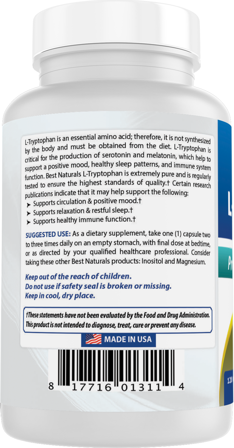 {"id":4679829717129,"title":"Best Naturals L-Tryptophan 500 mg 120 Capsules","handle":"best-naturals-l-tryptophan-500-mg-120-capsules","description":"\u003cul\u003e\n\u003cli style=\"font-weight: 400;\"\u003e\u003cspan style=\"font-weight: 400;\"\u003e3rd Party Lab Tested for Purity \u0026amp; Quality.\u003c\/span\u003e\u003c\/li\u003e\n\u003cli style=\"font-weight: 400;\"\u003e\u003cspan style=\"font-weight: 400;\"\u003e500 mg of L-Tryptophan per Capsule - 120 Capsules per Bottle.\u003c\/span\u003e\u003c\/li\u003e\n\u003cli style=\"font-weight: 400;\"\u003e\u003cspan style=\"font-weight: 400;\"\u003eNon-GMO \u0026amp; Gluten-Free.\u003c\/span\u003e\u003c\/li\u003e\n\u003cli style=\"font-weight: 400;\"\u003e\u003cspan style=\"font-weight: 400;\"\u003eProudly Made in USA, GMP Compliant, FDA Registered Facility.\u003c\/span\u003e\u003c\/li\u003e\n\u003cli style=\"font-weight: 400;\"\u003e\u003cspan style=\"font-weight: 400;\"\u003eNo Artificial Color, Flavor, or Sweetener, No Preservatives, No Sugar, No Milk, No Corn, No Soy, No Egg, No Lactose, No Gluten, No Wheat, No Yeast, No Fish. Sodium Free.\u003c\/span\u003e\u003c\/li\u003e\n\u003c\/ul\u003e","published_at":"2020-03-16T09:13:44-04:00","created_at":"2020-03-16T09:36:04-04:00","vendor":"shopbestnaturals.com","type":"","tags":["Supplements"],"price":999,"price_min":999,"price_max":999,"available":false,"price_varies":false,"compare_at_price":3499,"compare_at_price_min":3499,"compare_at_price_max":3499,"compare_at_price_varies":false,"variants":[{"id":32796158099593,"title":"Default Title","option1":"Default Title","option2":null,"option3":null,"sku":"817716013114","requires_shipping":true,"taxable":false,"featured_image":null,"available":false,"name":"Best Naturals L-Tryptophan 500 mg 120 Capsules","public_title":null,"options":["Default Title"],"price":999,"weight":122,"compare_at_price":3499,"inventory_management":"shopify","barcode":"817716013114","requires_selling_plan":false,"selling_plan_allocations":[]}],"images":["\/\/shopbestnaturals-com.myshopify.com\/cdn\/shop\/products\/Image-1_fa38c1ee-91f3-4392-86aa-56fae80c78aa.jpg?v=1749676177","\/\/shopbestnaturals-com.myshopify.com\/cdn\/shop\/files\/Image-4_51d8de05-7236-409d-887b-c2cf2933535b.jpg?v=1757013537","\/\/shopbestnaturals-com.myshopify.com\/cdn\/shop\/files\/Image-5_a7f926e8-d55b-43e8-9f35-df555f9fc53e.jpg?v=1757013537","\/\/shopbestnaturals-com.myshopify.com\/cdn\/shop\/files\/Image-6_ad2d090a-c5f9-42db-86aa-2270d6876dee.jpg?v=1757013537","\/\/shopbestnaturals-com.myshopify.com\/cdn\/shop\/files\/Image-7_bf739f30-28db-4a46-bcb9-1e7cbd215ca6.jpg?v=1757013537","\/\/shopbestnaturals-com.myshopify.com\/cdn\/shop\/files\/Image-2_1b7e4777-9fbd-44c6-84a7-f5d4747e8c66.png?v=1757013537","\/\/shopbestnaturals-com.myshopify.com\/cdn\/shop\/files\/Image-3_df88f051-7e9e-43bb-9705-556e8d9f6a68.png?v=1757013537"],"featured_image":"\/\/shopbestnaturals-com.myshopify.com\/cdn\/shop\/products\/Image-1_fa38c1ee-91f3-4392-86aa-56fae80c78aa.jpg?v=1749676177","options":["Title"],"media":[{"alt":"Best Naturals L-Tryptophan 500 mg 120 Capsules - shopbestnaturals.com","id":12135487996065,"position":1,"preview_image":{"aspect_ratio":0.525,"height":2574,"width":1351,"src":"\/\/shopbestnaturals-com.myshopify.com\/cdn\/shop\/products\/Image-1_fa38c1ee-91f3-4392-86aa-56fae80c78aa.jpg?v=1749676177"},"aspect_ratio":0.525,"height":2574,"media_type":"image","src":"\/\/shopbestnaturals-com.myshopify.com\/cdn\/shop\/products\/Image-1_fa38c1ee-91f3-4392-86aa-56fae80c78aa.jpg?v=1749676177","width":1351},{"alt":null,"id":37699218505945,"position":2,"preview_image":{"aspect_ratio":1.0,"height":1500,"width":1500,"src":"\/\/shopbestnaturals-com.myshopify.com\/cdn\/shop\/files\/Image-4_51d8de05-7236-409d-887b-c2cf2933535b.jpg?v=1757013537"},"aspect_ratio":1.0,"height":1500,"media_type":"image","src":"\/\/shopbestnaturals-com.myshopify.com\/cdn\/shop\/files\/Image-4_51d8de05-7236-409d-887b-c2cf2933535b.jpg?v=1757013537","width":1500},{"alt":null,"id":37699218538713,"position":3,"preview_image":{"aspect_ratio":1.0,"height":1500,"width":1500,"src":"\/\/shopbestnaturals-com.myshopify.com\/cdn\/shop\/files\/Image-5_a7f926e8-d55b-43e8-9f35-df555f9fc53e.jpg?v=1757013537"},"aspect_ratio":1.0,"height":1500,"media_type":"image","src":"\/\/shopbestnaturals-com.myshopify.com\/cdn\/shop\/files\/Image-5_a7f926e8-d55b-43e8-9f35-df555f9fc53e.jpg?v=1757013537","width":1500},{"alt":null,"id":37699218571481,"position":4,"preview_image":{"aspect_ratio":1.0,"height":1500,"width":1500,"src":"\/\/shopbestnaturals-com.myshopify.com\/cdn\/shop\/files\/Image-6_ad2d090a-c5f9-42db-86aa-2270d6876dee.jpg?v=1757013537"},"aspect_ratio":1.0,"height":1500,"media_type":"image","src":"\/\/shopbestnaturals-com.myshopify.com\/cdn\/shop\/files\/Image-6_ad2d090a-c5f9-42db-86aa-2270d6876dee.jpg?v=1757013537","width":1500},{"alt":null,"id":37699218604249,"position":5,"preview_image":{"aspect_ratio":1.0,"height":1500,"width":1500,"src":"\/\/shopbestnaturals-com.myshopify.com\/cdn\/shop\/files\/Image-7_bf739f30-28db-4a46-bcb9-1e7cbd215ca6.jpg?v=1757013537"},"aspect_ratio":1.0,"height":1500,"media_type":"image","src":"\/\/shopbestnaturals-com.myshopify.com\/cdn\/shop\/files\/Image-7_bf739f30-28db-4a46-bcb9-1e7cbd215ca6.jpg?v=1757013537","width":1500},{"alt":null,"id":37699218637017,"position":6,"preview_image":{"aspect_ratio":0.523,"height":1500,"width":785,"src":"\/\/shopbestnaturals-com.myshopify.com\/cdn\/shop\/files\/Image-2_1b7e4777-9fbd-44c6-84a7-f5d4747e8c66.png?v=1757013537"},"aspect_ratio":0.523,"height":1500,"media_type":"image","src":"\/\/shopbestnaturals-com.myshopify.com\/cdn\/shop\/files\/Image-2_1b7e4777-9fbd-44c6-84a7-f5d4747e8c66.png?v=1757013537","width":785},{"alt":null,"id":37699218669785,"position":7,"preview_image":{"aspect_ratio":0.523,"height":1500,"width":785,"src":"\/\/shopbestnaturals-com.myshopify.com\/cdn\/shop\/files\/Image-3_df88f051-7e9e-43bb-9705-556e8d9f6a68.png?v=1757013537"},"aspect_ratio":0.523,"height":1500,"media_type":