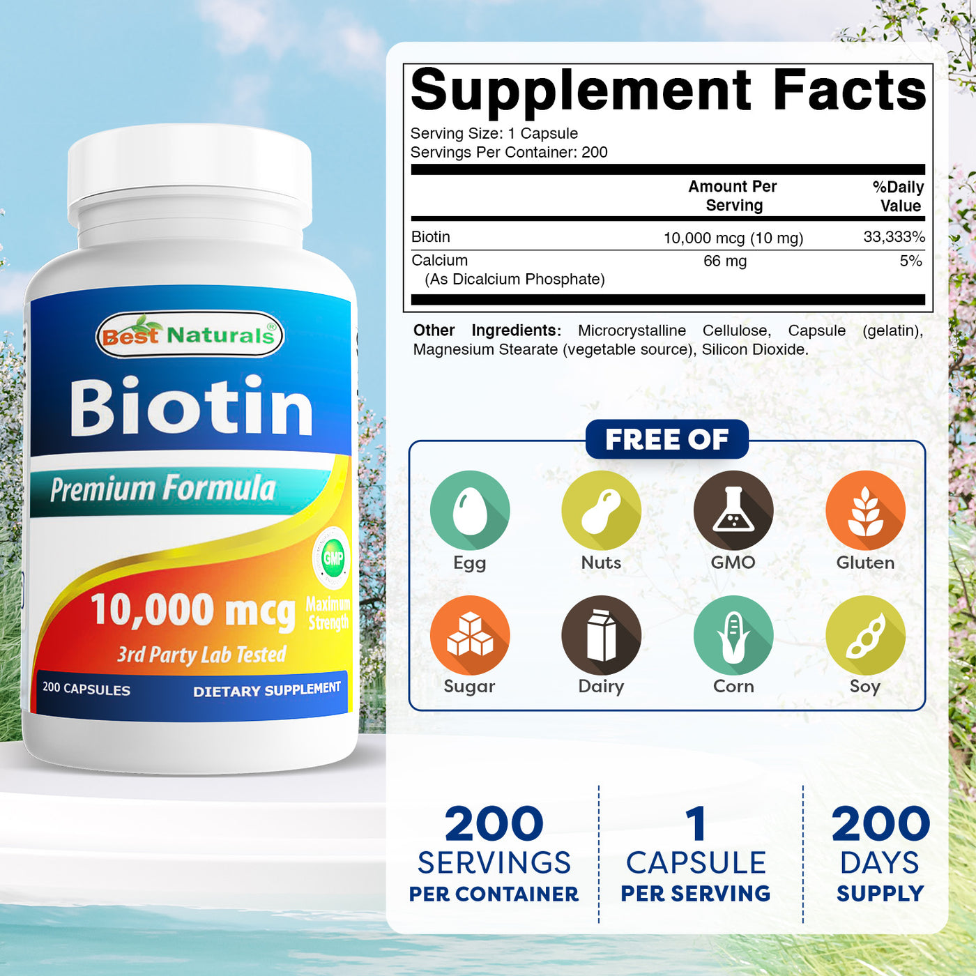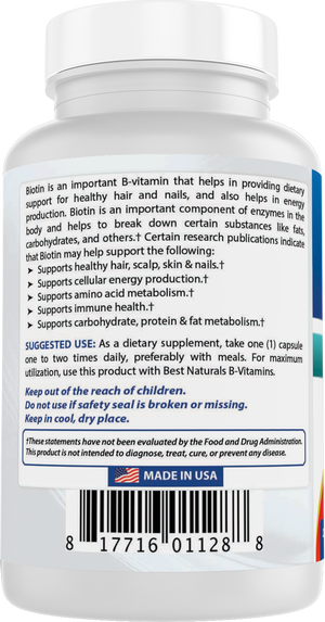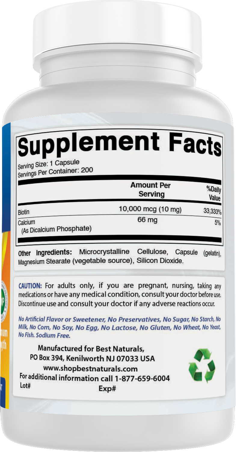 {"id":4512927154313,"title":"Best Naturals Biotin 10000 mcg 200 Capsules","handle":"best-naturals-biotin-10000-mcg-200-capsules","description":"\u003cul class=\"a-unordered-list a-vertical a-spacing-none\"\u003e\n\u003cli style=\"font-weight: 400;\"\u003e\u003cspan style=\"font-weight: 400;\"\u003e3rd Party Lab Tested for Purity \u0026amp; Quality.\u003c\/span\u003e\u003c\/li\u003e\n\u003cli style=\"font-weight: 400;\"\u003e\u003cspan style=\"font-weight: 400;\"\u003e10,000 mcg (10 mg) of Biotin per Capsule - 200 Capsules per Bottle.\u003c\/span\u003e\u003c\/li\u003e\n\u003cli style=\"font-weight: 400;\"\u003e\u003cspan style=\"font-weight: 400;\"\u003eNon-GMO \u0026amp; Gluten Free.\u003c\/span\u003e\u003c\/li\u003e\n\u003cli style=\"font-weight: 400;\"\u003e\u003cspan style=\"font-weight: 400;\"\u003eProudly Made in the USA, GMP Compliant, FDA Registered Facility.\u003c\/span\u003e\u003c\/li\u003e\n\u003cli style=\"font-weight: 400;\"\u003e\u003cspan style=\"font-weight: 400;\"\u003eNo Artificial Color, Flavor, or Sweetener, No Preservatives, No Sugar, No Milk, No Corn, No Soy, No Egg, No Lactose, No Gluten, No Wheat, No Yeast, No Fish. Sodium Free.\u003c\/span\u003e\u003c\/li\u003e\n\u003c\/ul\u003e","published_at":"2020-01-27T10:18:54-05:00","created_at":"2020-01-27T10:41:31-05:00","vendor":"shopbestnaturals.com","type":"","tags":["A to Z Vitamins"],"price":1099,"price_min":1099,"price_max":1099,"available":true,"price_varies":false,"compare_at_price":3199,"compare_at_price_min":3199,"compare_at_price_max":3199,"compare_at_price_varies":false,"variants":[{"id":31982868856969,"title":"Default Title","option1":"Default Title","option2":null,"option3":null,"sku":"817716011288","requires_shipping":true,"taxable":false,"featured_image":null,"available":true,"name":"Best Naturals Biotin 10000 mcg 200 Capsules","public_title":null,"options":["Default Title"],"price":1099,"weight":132,"compare_at_price":3199,"inventory_management":"shopify","barcode":"817716011288","requires_selling_plan":false,"selling_plan_allocations":[]}],"images":["\/\/shopbestnaturals-com.myshopify.com\/cdn\/shop\/products\/Image-1_2772c57e-f50b-4f8e-8758-3266453e1836.jpg?v=1749675226","\/\/shopbestnaturals-com.myshopify.com\/cdn\/shop\/files\/Image-4_3930dda1-1818-499f-8dc8-85b5ccc56123.jpg?v=1757442459","\/\/shopbestnaturals-com.myshopify.com\/cdn\/shop\/files\/Image-5_9348a82e-f8f2-4139-9768-4bdd66f0131d.jpg?v=1757442458","\/\/shopbestnaturals-com.myshopify.com\/cdn\/shop\/files\/Image-6_71a54632-43b3-4b9c-97d3-e01e4c2fabce.jpg?v=1757442458","\/\/shopbestnaturals-com.myshopify.com\/cdn\/shop\/files\/Image-7_ee971bed-da78-44a7-ac84-bdd1ea76b483.jpg?v=1757442459","\/\/shopbestnaturals-com.myshopify.com\/cdn\/shop\/files\/Image-2_9a81f6b2-8ab7-4158-bd36-529e8915cb80.png?v=1757442459","\/\/shopbestnaturals-com.myshopify.com\/cdn\/shop\/files\/Image-3_90a00074-9cda-4d27-8676-391f2edca21e.png?v=1757442458"],"featured_image":"\/\/shopbestnaturals-com.myshopify.com\/cdn\/shop\/products\/Image-1_2772c57e-f50b-4f8e-8758-3266453e1836.jpg?v=1749675226","options":["Title"],"media":[{"alt":"Best Naturals Biotin 10000 mcg 200 Capsules - shopbestnaturals.com","id":23086943928481,"position":1,"preview_image":{"aspect_ratio":0.525,"height":2574,"width":1351,"src":"\/\/shopbestnaturals-com.myshopify.com\/cdn\/shop\/products\/Image-1_2772c57e-f50b-4f8e-8758-3266453e1836.jpg?v=1749675226"},"aspect_ratio":0.525,"height":2574,"media_type":"image","src":"\/\/shopbestnaturals-com.myshopify.com\/cdn\/shop\/products\/Image-1_2772c57e-f50b-4f8e-8758-3266453e1836.jpg?v=1749675226","width":1351},{"alt":null,"id":37717632581849,"position":2,"preview_image":{"aspect_ratio":1.0,"height":1500,"width":1500,"src":"\/\/shopbestnaturals-com.myshopify.com\/cdn\/shop\/files\/Image-4_3930dda1-1818-499f-8dc8-85b5ccc56123.jpg?v=1757442459"},"aspect_ratio":1.0,"height":1500,"media_type":"image","src":"\/\/shopbestnaturals-com.myshopify.com\/cdn\/shop\/files\/Image-4_3930dda1-1818-499f-8dc8-85b5ccc56123.jpg?v=1757442459","width":1500},{"alt":null,"id":37717632614617,"position":3,"preview_image":{"aspect_ratio":1.0,"height":1500,"width":1500,"src":"\/\/shopbestnaturals-com.myshopify.com\/cdn\/shop\/files\/Image-5_9348a82e-f8f2-4139-9768-4bdd66f0131d.jpg?v=1757442458"},"aspect_ratio":1.0,"height":1500,"media_type":"image","src":"\/\/shopbestnaturals-com.myshopify.com\/cdn\/shop\/files\/Image-5_9348a82e-f8f2-4139-9768-4bdd66f0131d.jpg?v=1757442458","width":1500},{"alt":null,"id":37717632647385,"position":4,"preview_image":{"aspect_ratio":1.0,"height":1500,"width":1500,"src":"\/\/shopbestnaturals-com.myshopify.com\/cdn\/shop\/files\/Image-6_71a54632-43b3-4b9c-97d3-e01e4c2fabce.jpg?v=1757442458"},"aspect_ratio":1.0,"height":1500,"media_type":"image","src":"\/\/shopbestnaturals-com.myshopify.com\/cdn\/shop\/files\/Image-6_71a54632-43b3-4b9c-97d3-e01e4c2fabce.jpg?v=1757442458","width":1500},{"alt":null,"id":37717632680153,"position":5,"preview_image":{"aspect_ratio":1.0,"height":1500,"width":1500,"src":"\/\/shopbestnaturals-com.myshopify.com\/cdn\/shop\/files\/Image-7_ee971bed-da78-44a7-ac84-bdd1ea76b483.jpg?v=1757442459"},"aspect_ratio":1.0,"height":1500,"media_type":"image","src":"\/\/shopbestnaturals-com.myshopify.com\/cdn\/shop\/files\/Image-7_ee971bed-da78-44a7-ac84-bdd1ea76b483.jpg?v=1757442459","width":1500},{"alt":null,"id":37717632712921,"position":6,"preview_image":{"aspect_ratio":0.523,"height":1500,"width":785,"src":"\/\/shopbestnaturals-com.myshopify.com\/cdn\/shop\/files\/Image-2_9a81f6b2-8ab7-4158-bd36-529e8915cb80.png?v=1757442459"},"aspect_ratio":0.523,"height":1500,"media_type":"image","src":"\/\/shopbestnaturals-com.myshopify.com\/cdn\/shop\/files\/Image-2_9a81f6b2-8ab7-4158-bd36-529e8915cb80.png?v=1757442459","width":785},{"alt":null,"id":37717632745689,"position":7,"preview_image":{"aspect_ratio":0.523,"height":1500,"width":785,"src":"\/\/shopbestnaturals-com.myshopify.com\/cdn\/shop\/files\/Image-3_90a00074-9cda-4d27-8676-391f2edca21e.png?v=1757